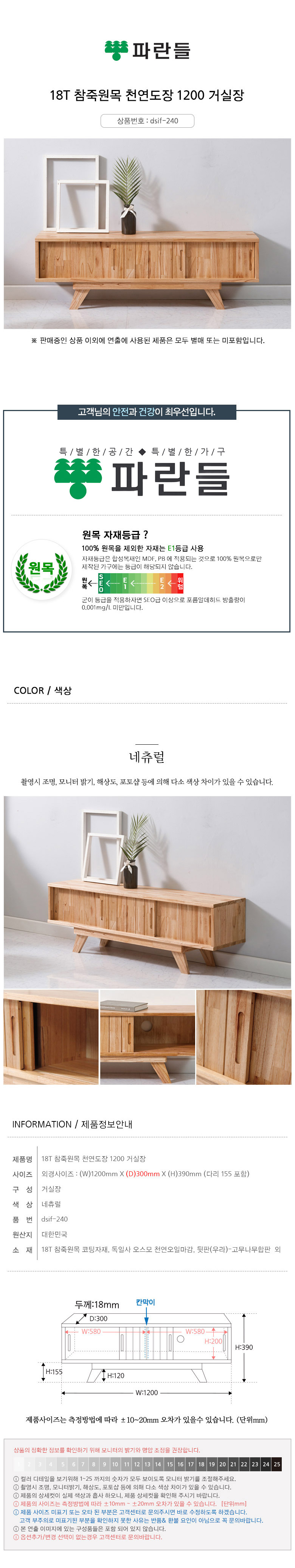 파란들가구 참죽원목 천연도장 1200 TV거실장 거실수납장