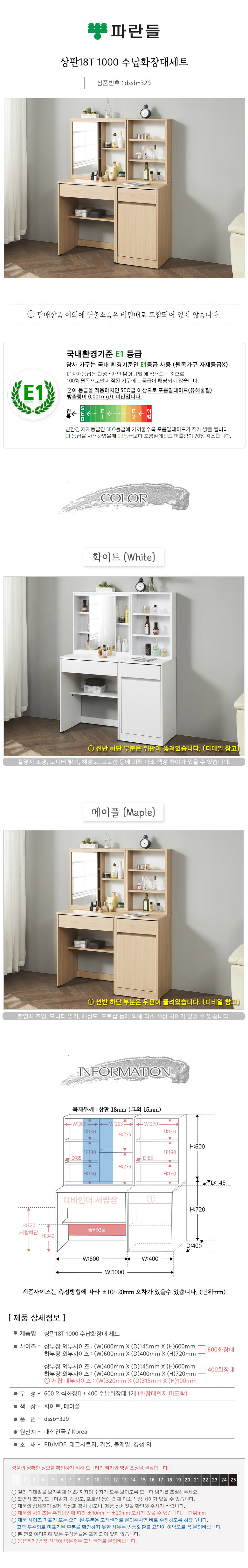 파란들가구 반하나 상판18T 1000 수납화장대세트 입식화장대