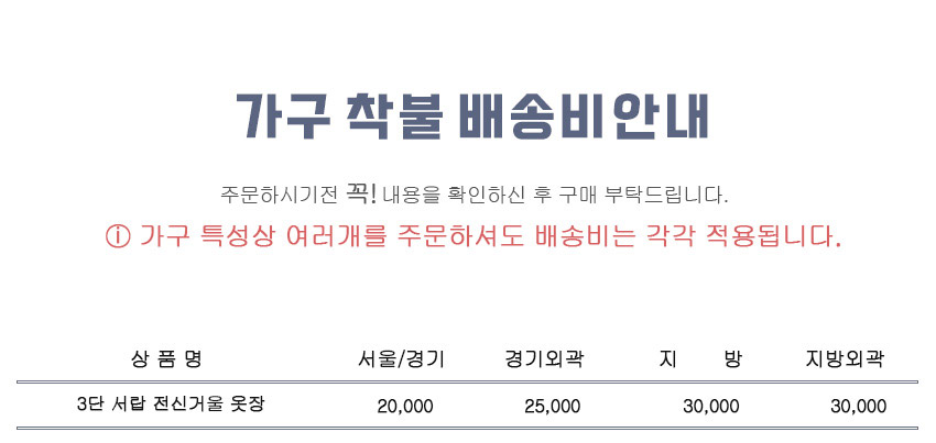파란들가구 반하나 3단서랍 전신경옷장 전신거울옷장 수납장