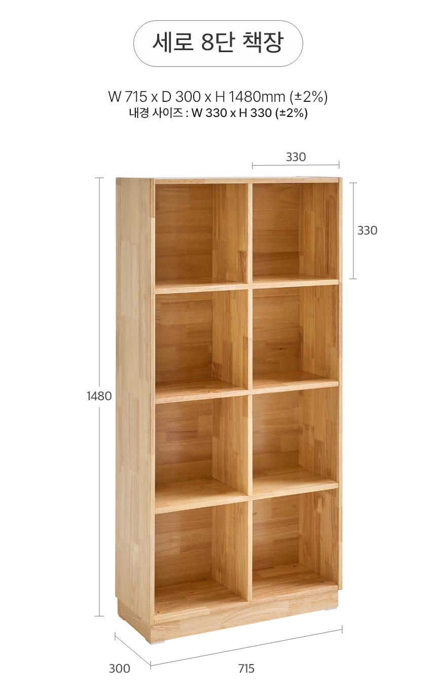 (현대Hmall)동서가구 어텀 오픈 세로 8칸 고무나무 원목 책장 DF923569