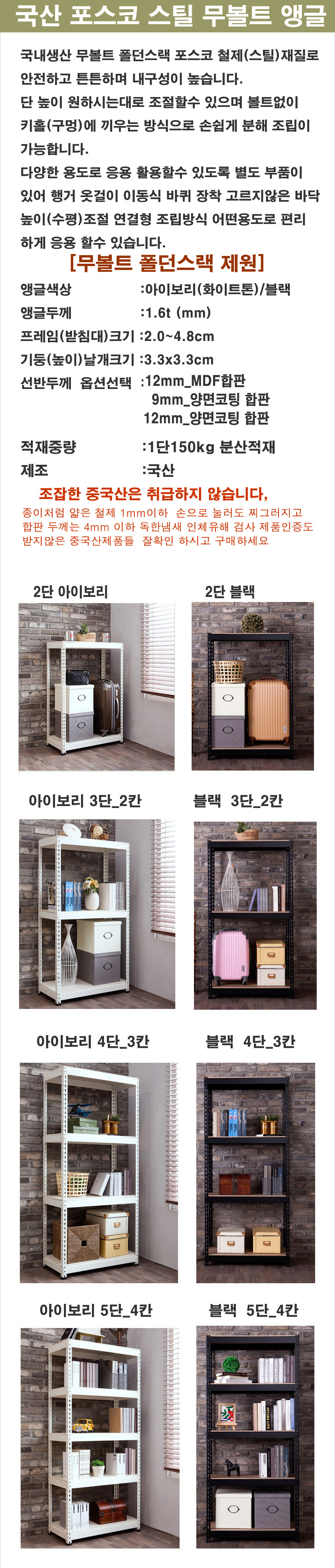국산 폴던스랙 무볼트 조립식앵글 베단다 창고 공장 거실 다용도 세탁기 행거수납선반 2단3단4단5단 km앵글