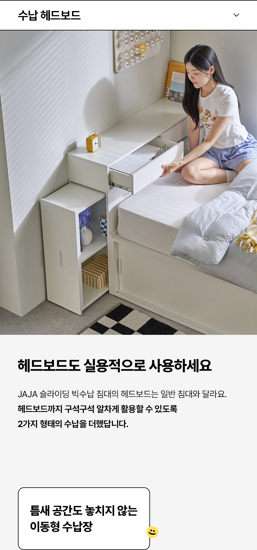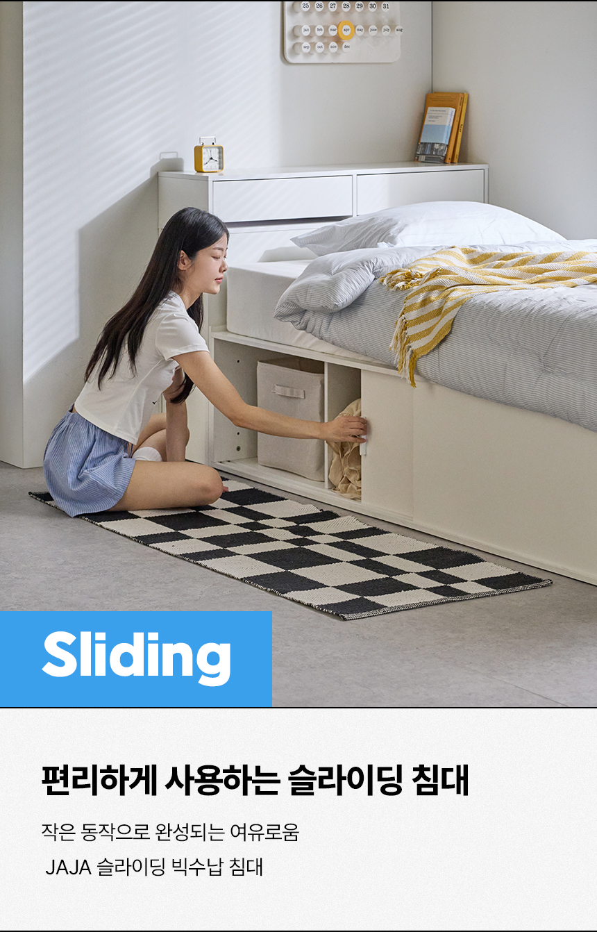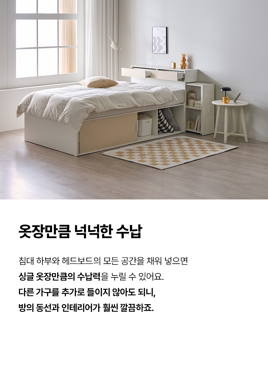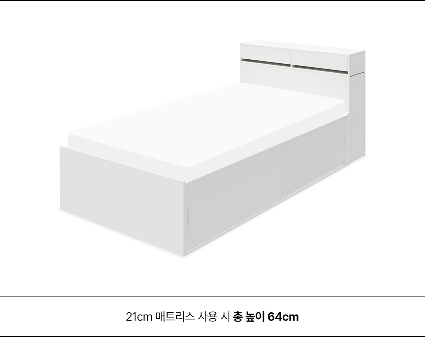 (매트선택가능) 휴도 JAJA 슬라이딩 빅서랍 수납 헤드 침대 프레임 SS + 25cm 매트리스