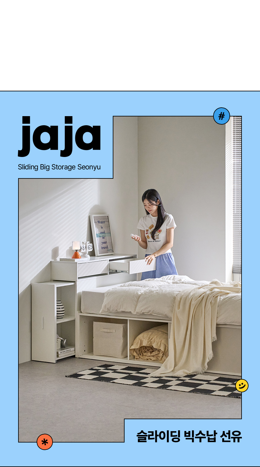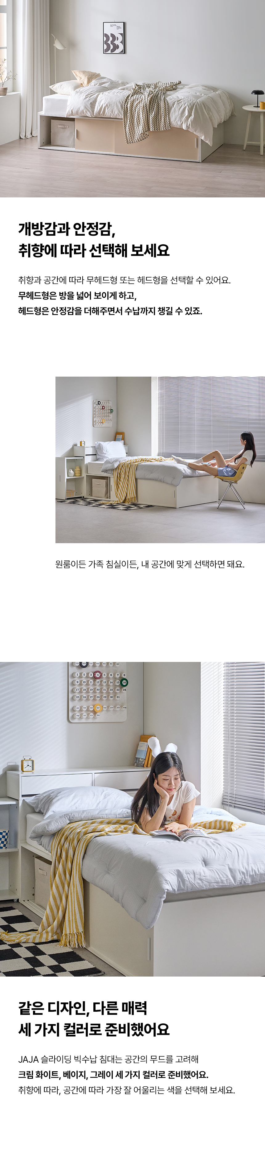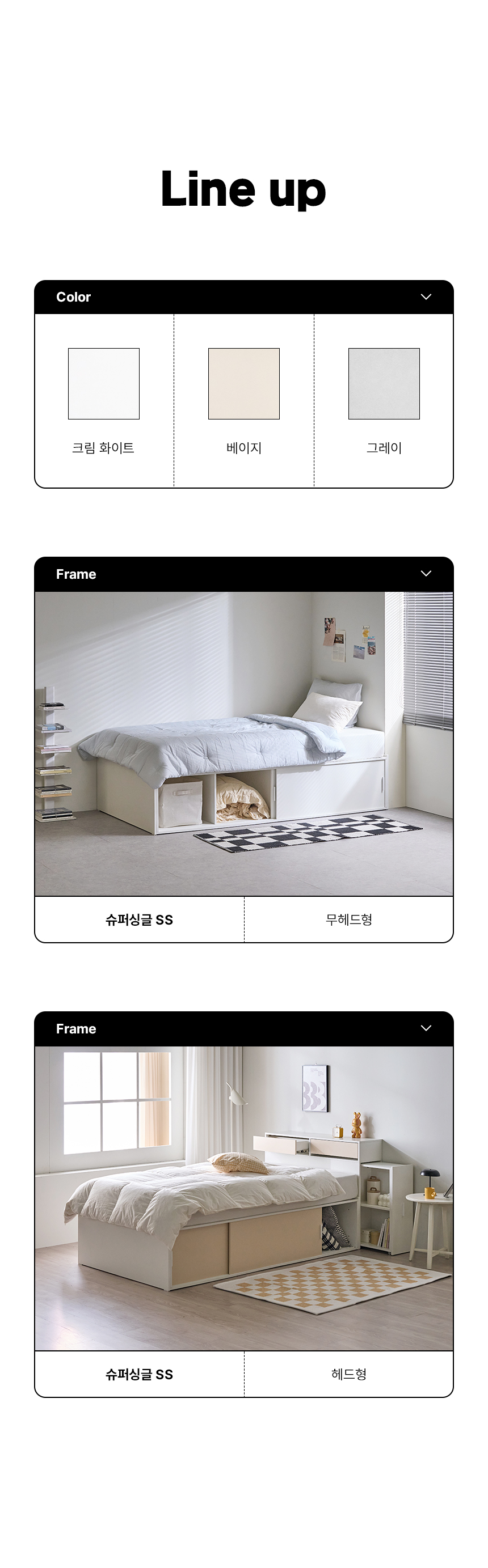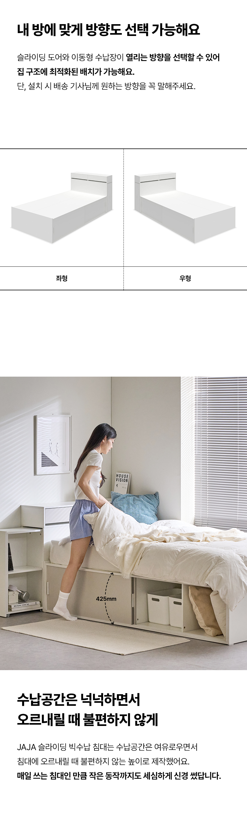 (매트선택가능) 휴도 JAJA 슬라이딩 빅서랍 수납 헤드 침대 프레임 SS + 25cm 매트리스