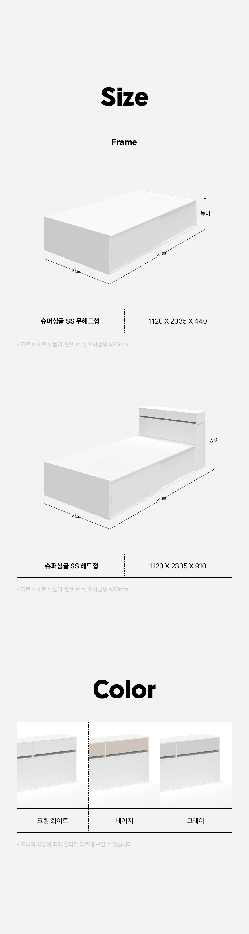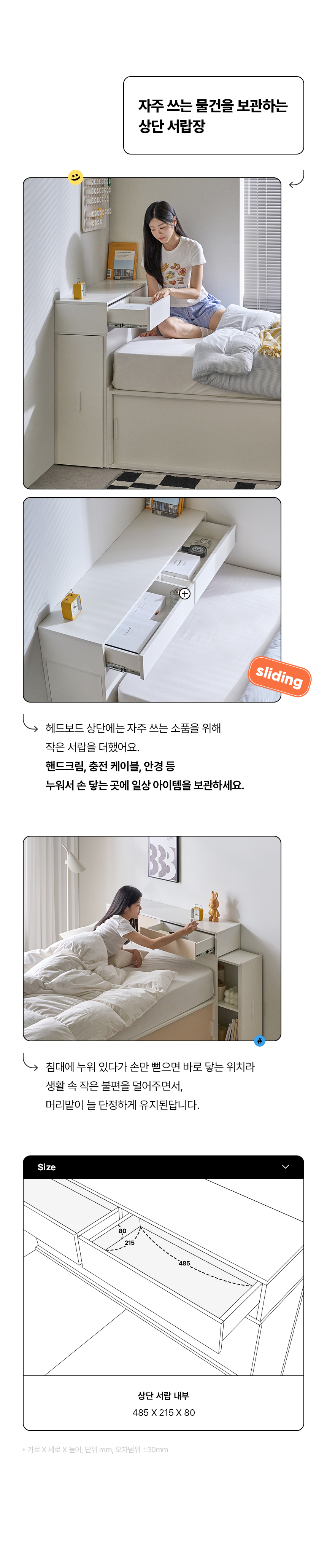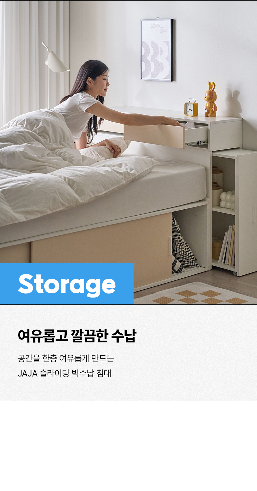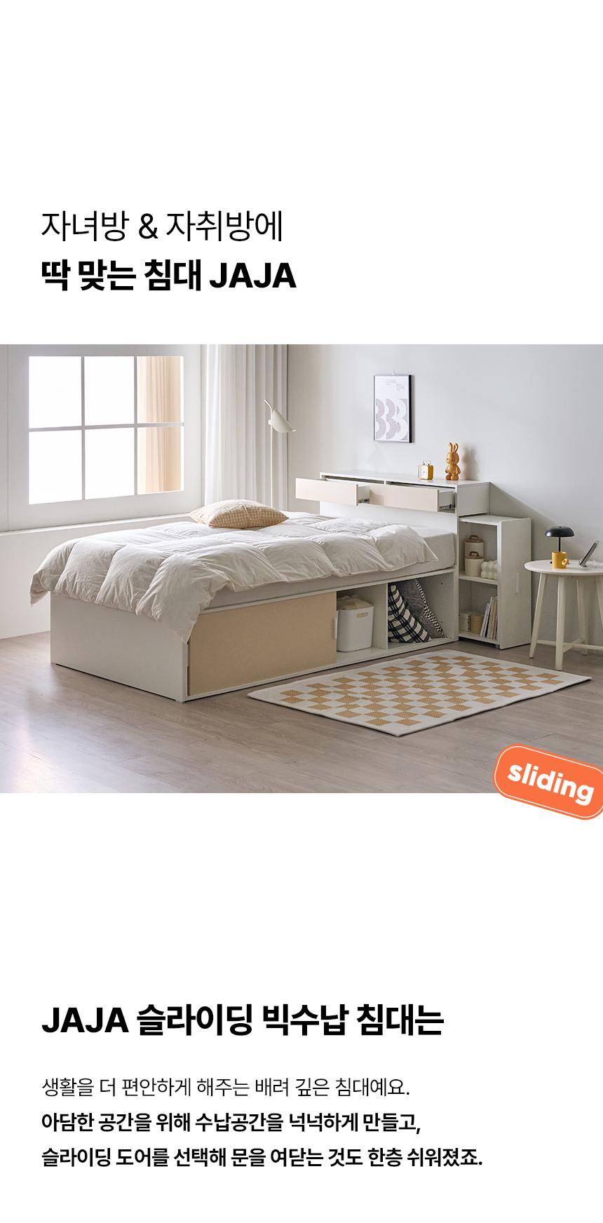 (매트선택가능) 휴도 JAJA 슬라이딩 빅서랍 수납 헤드 침대 프레임 SS + 25cm 매트리스