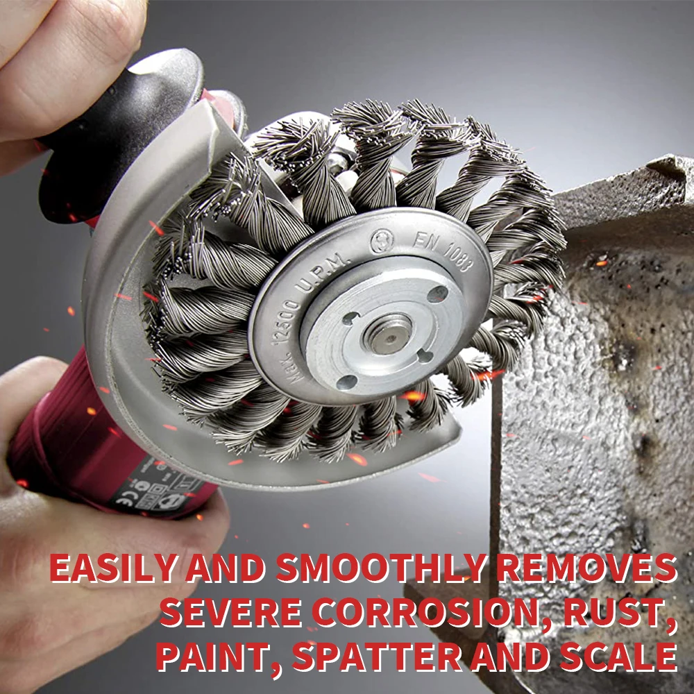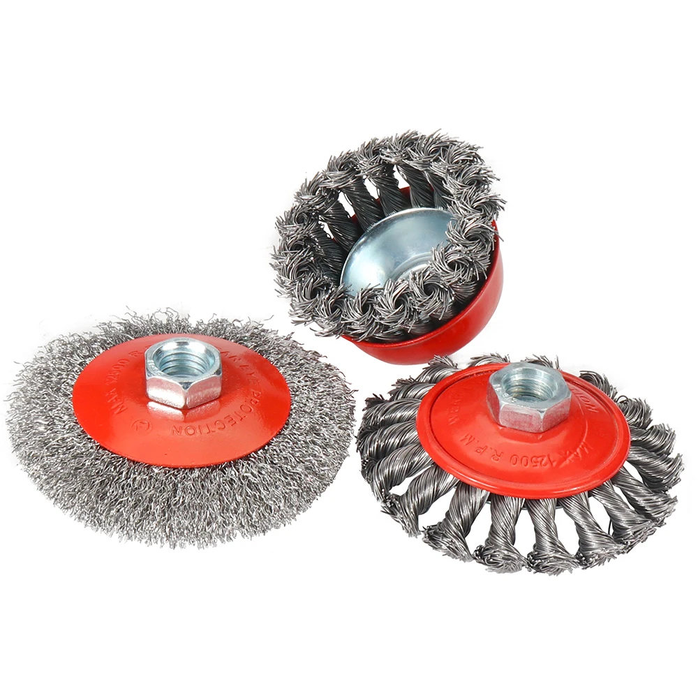 트위스트 스틸 와이어 휠 M14 브러시 강한 페인트 제거 로타리 트위스트 매듭 디버링 75mm/95mm/100mm 금속 앵글 그라인더 용