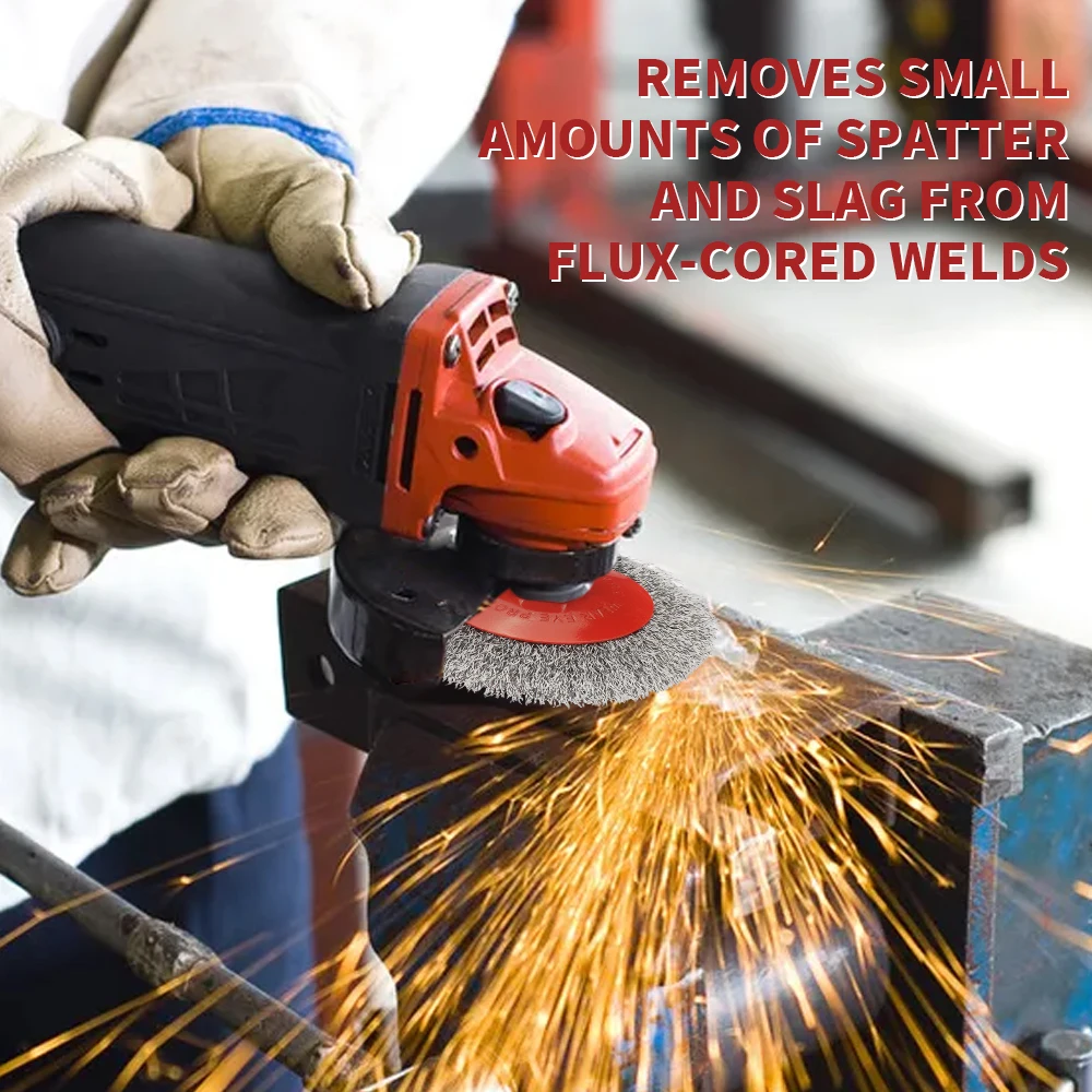 -스틸 와이어 휠 브러시 0.3mm 두껍게 한 철강선 감기 디자인, 두껍게 한 철강선 강선전도 감기 디자인, 사용 도중 방목 없음, 높은 일 효율성.