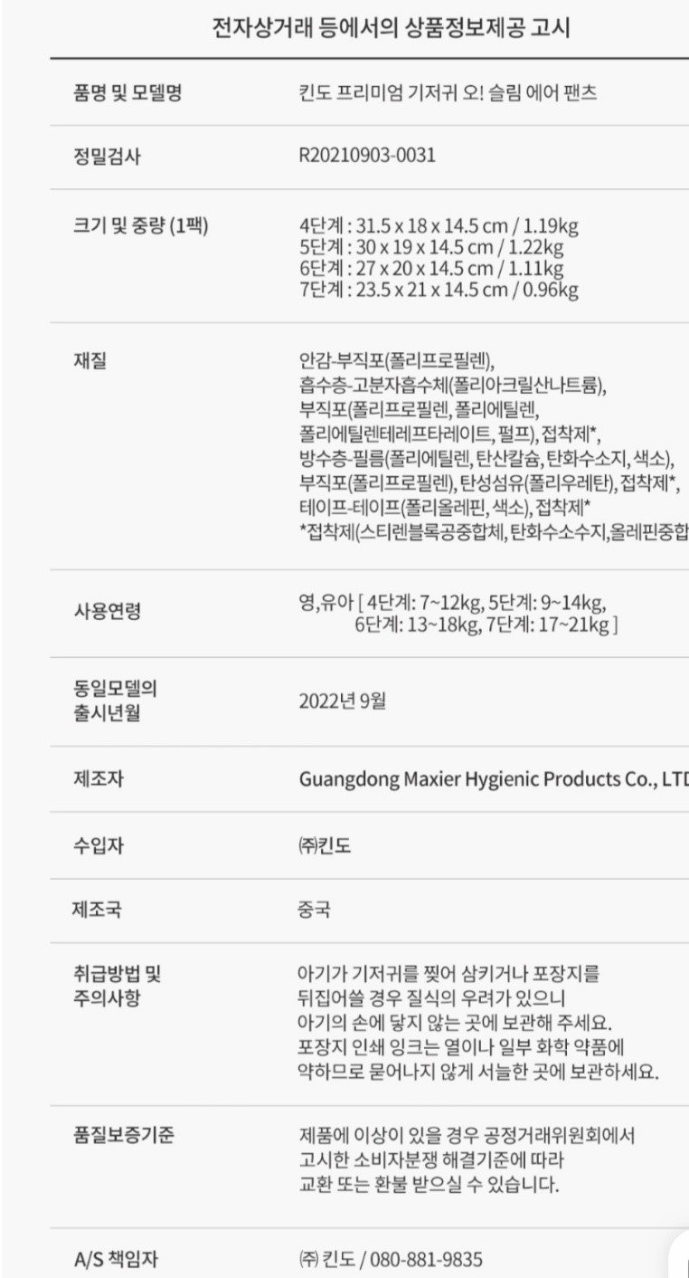 (신세계의정부점)킨도 NEW 오SLIM에어팬츠 5단계 1박스(34매4개)-5일부터 순차출고됩니다