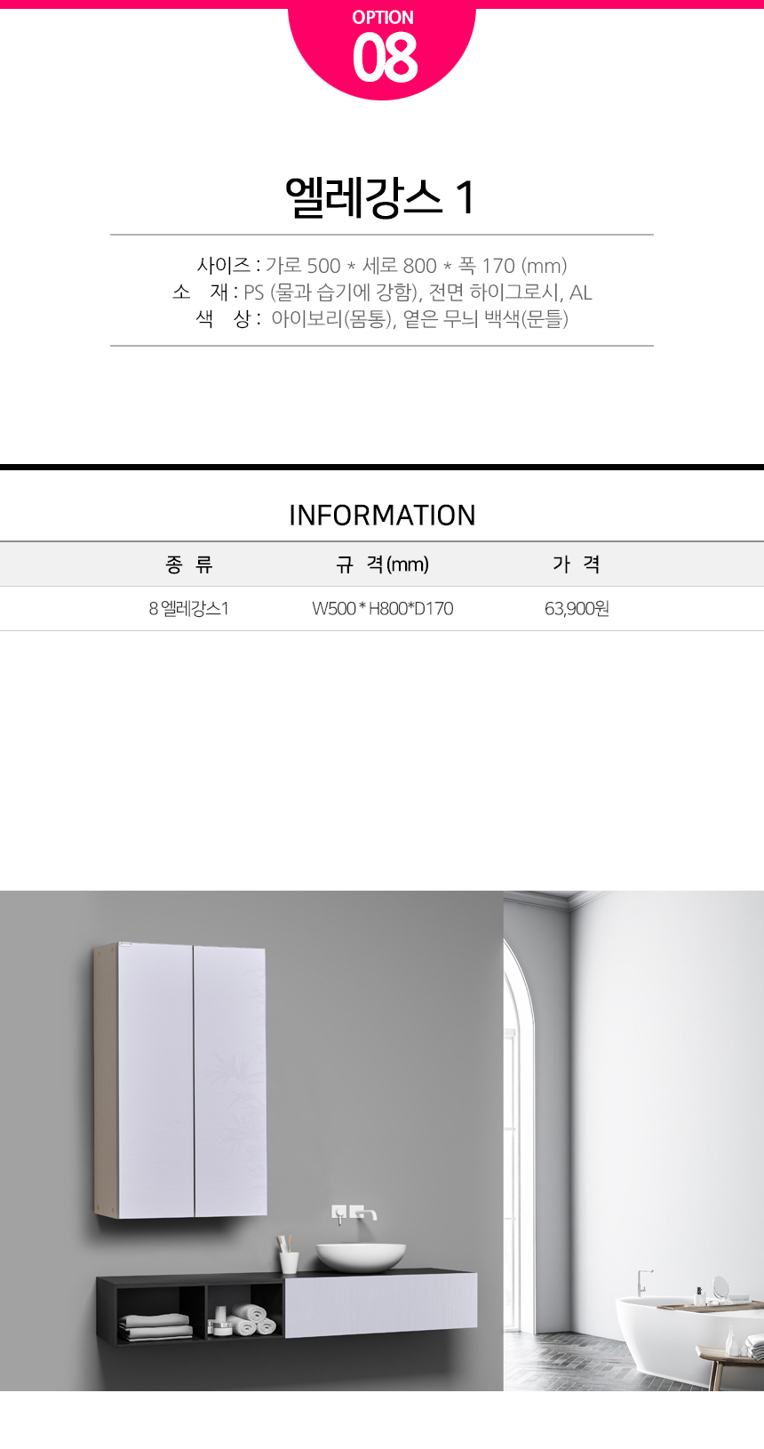 욕실장 욕실수납장 여닫이 8 엘레강스 1