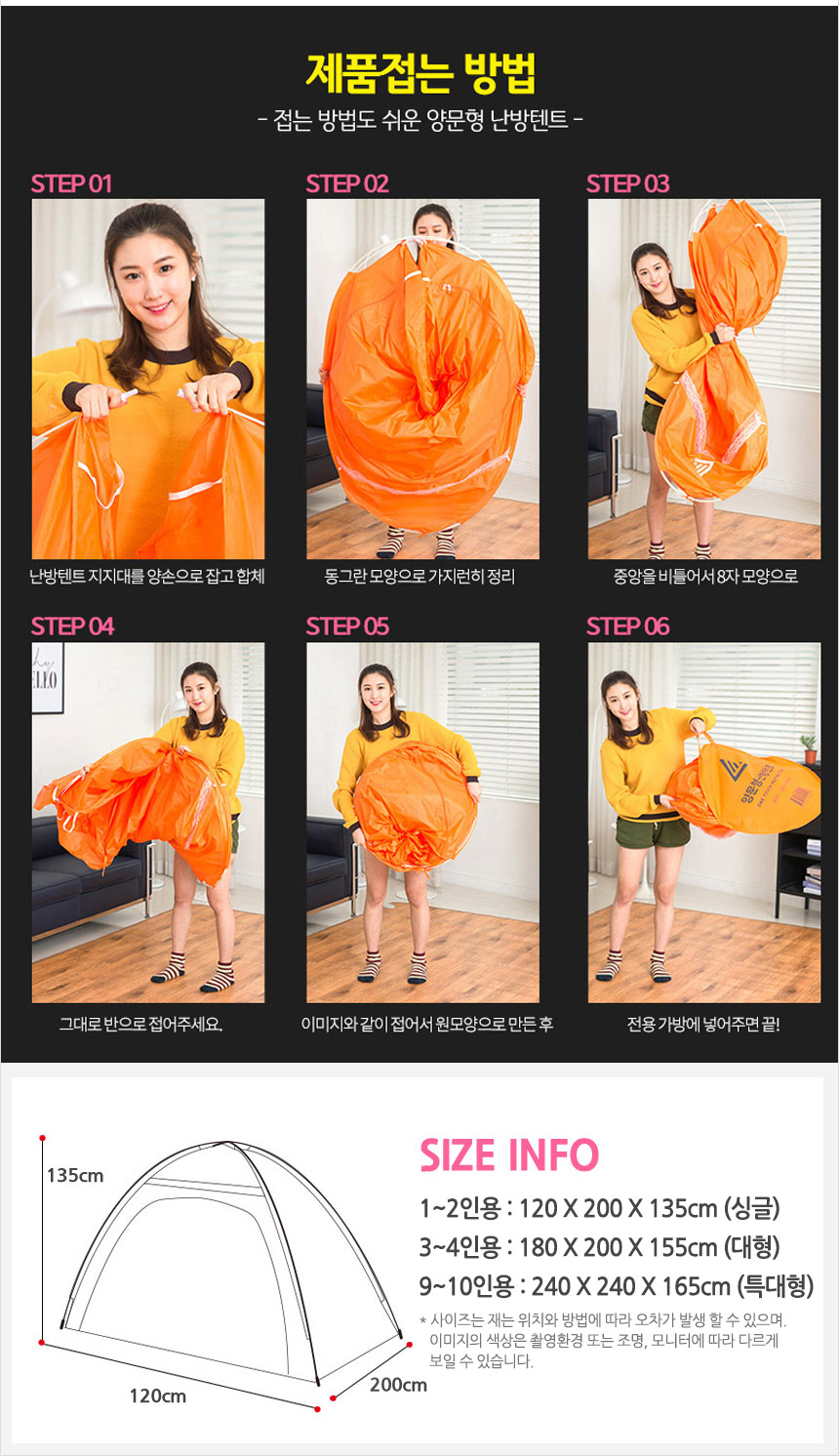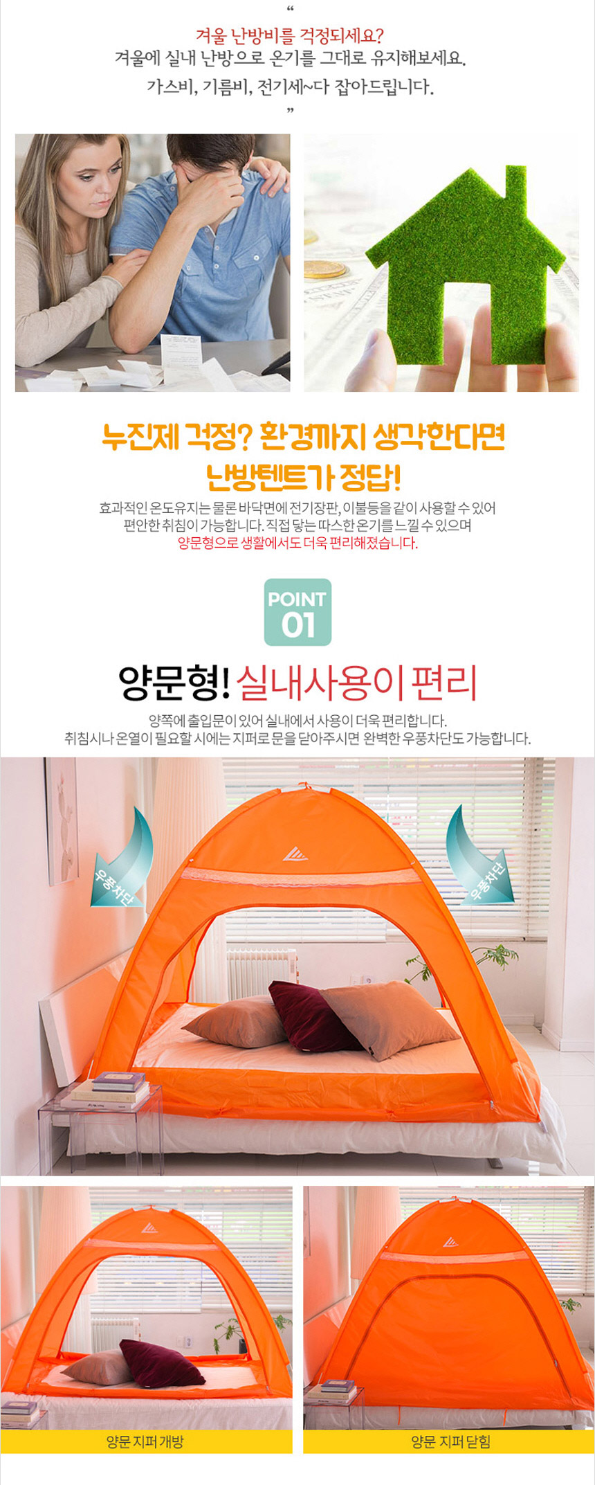 런웨이브 원터치 양문형 난방텐트 3~4인용 보온텐트