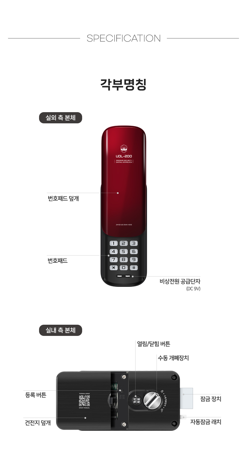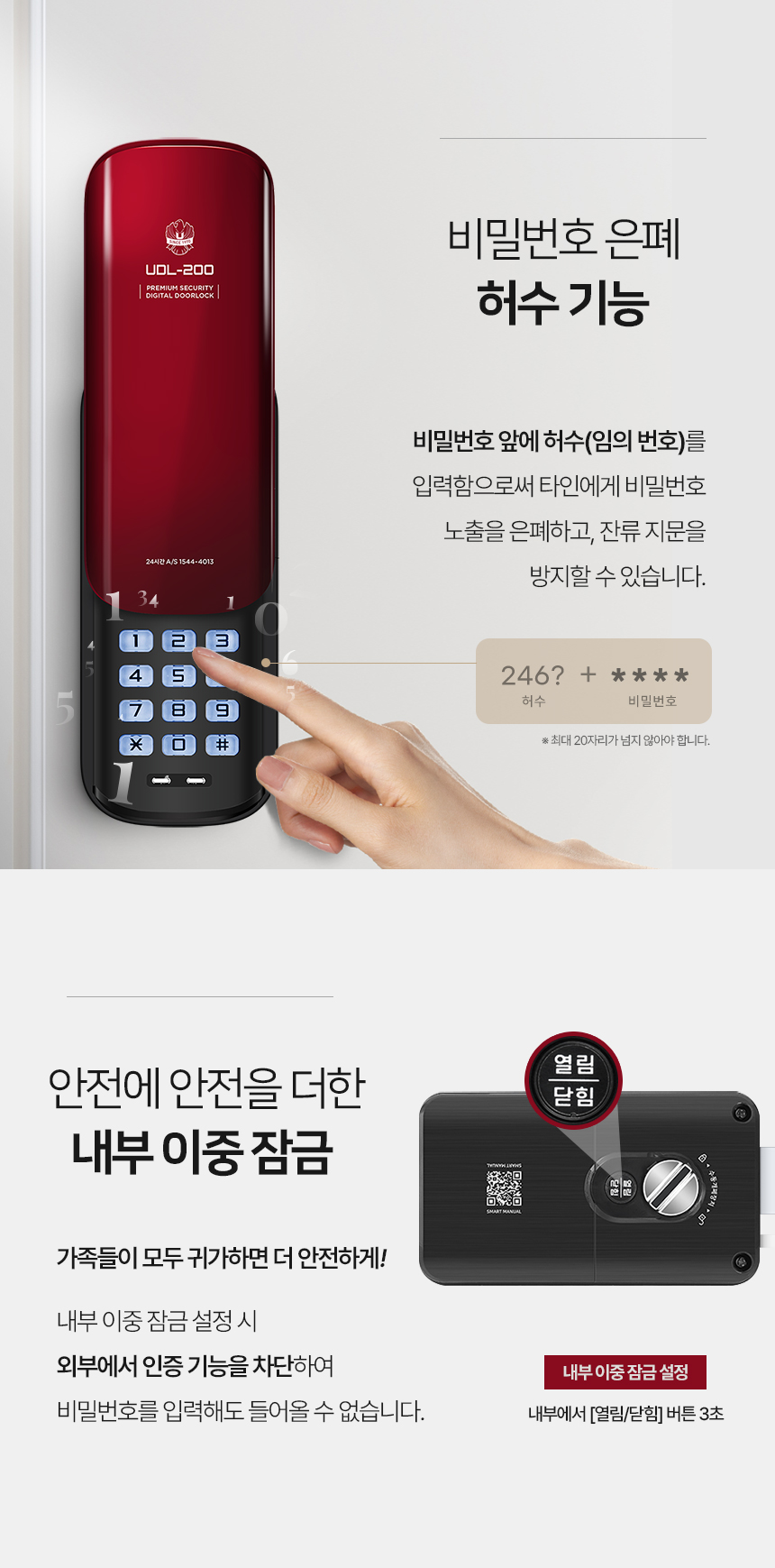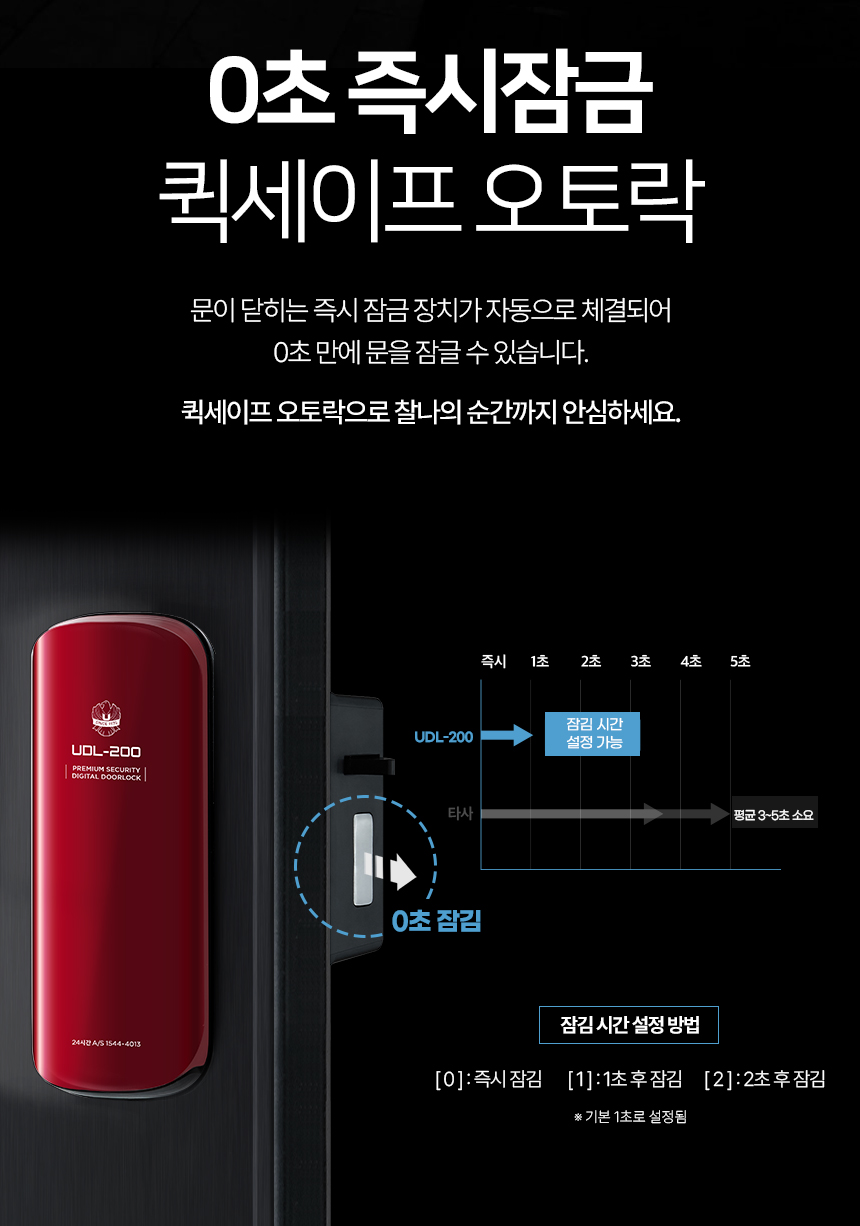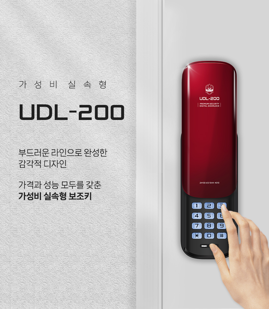 UDL-200 자가설치 즉시잠김 현관문 디지털도어락 번호키 비밀번호3개 허수기능 내부이중잠금 관리자기능