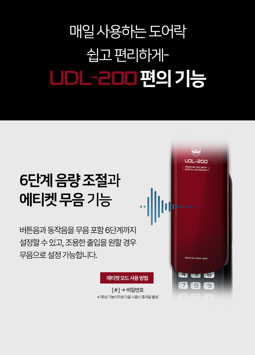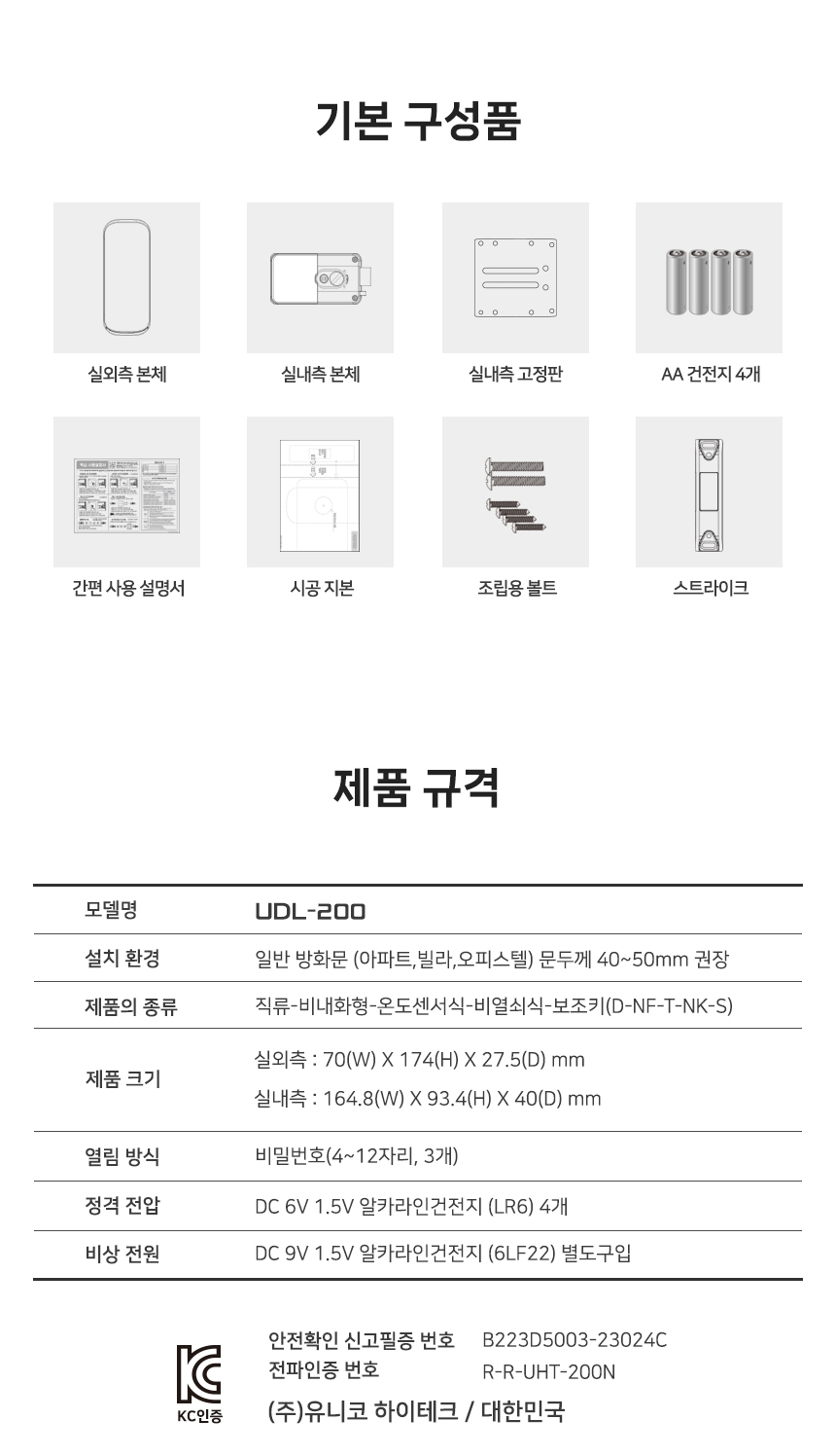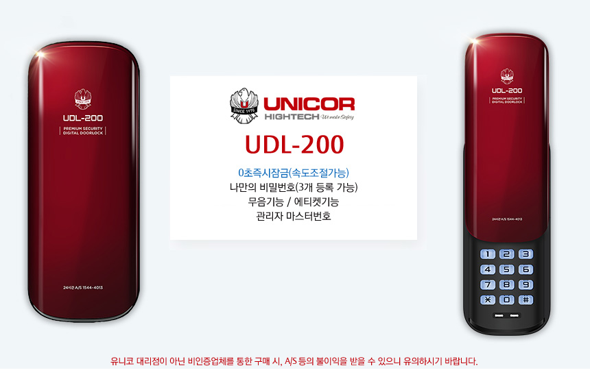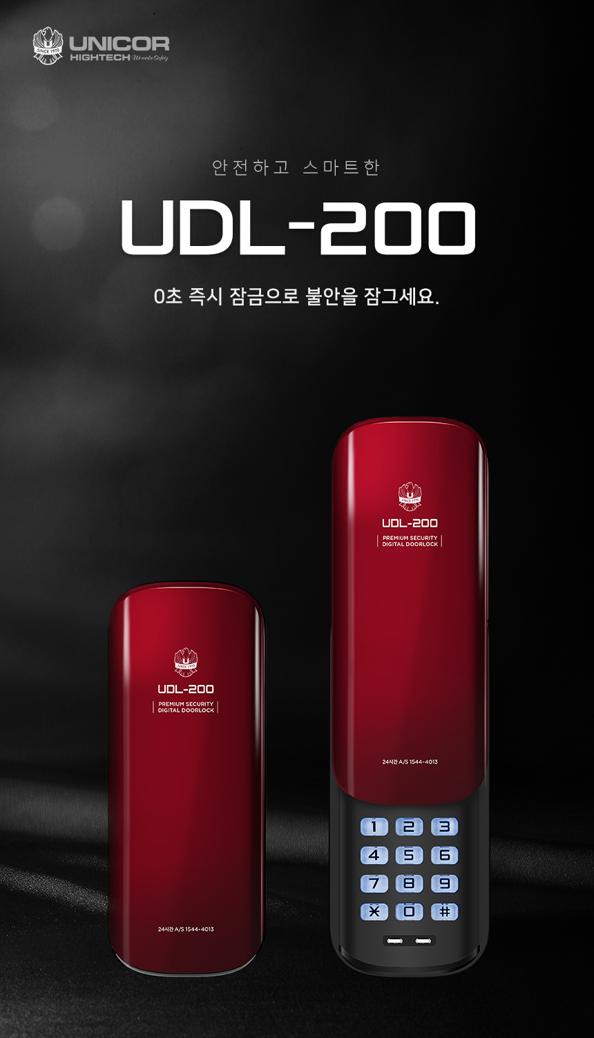 UDL-200 자가설치 즉시잠김 현관문 디지털도어락 번호키 비밀번호3개 허수기능 내부이중잠금 관리자기능