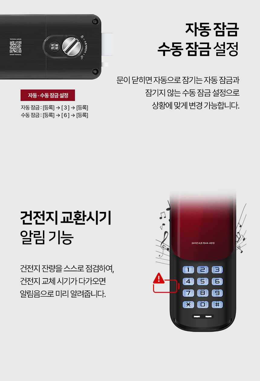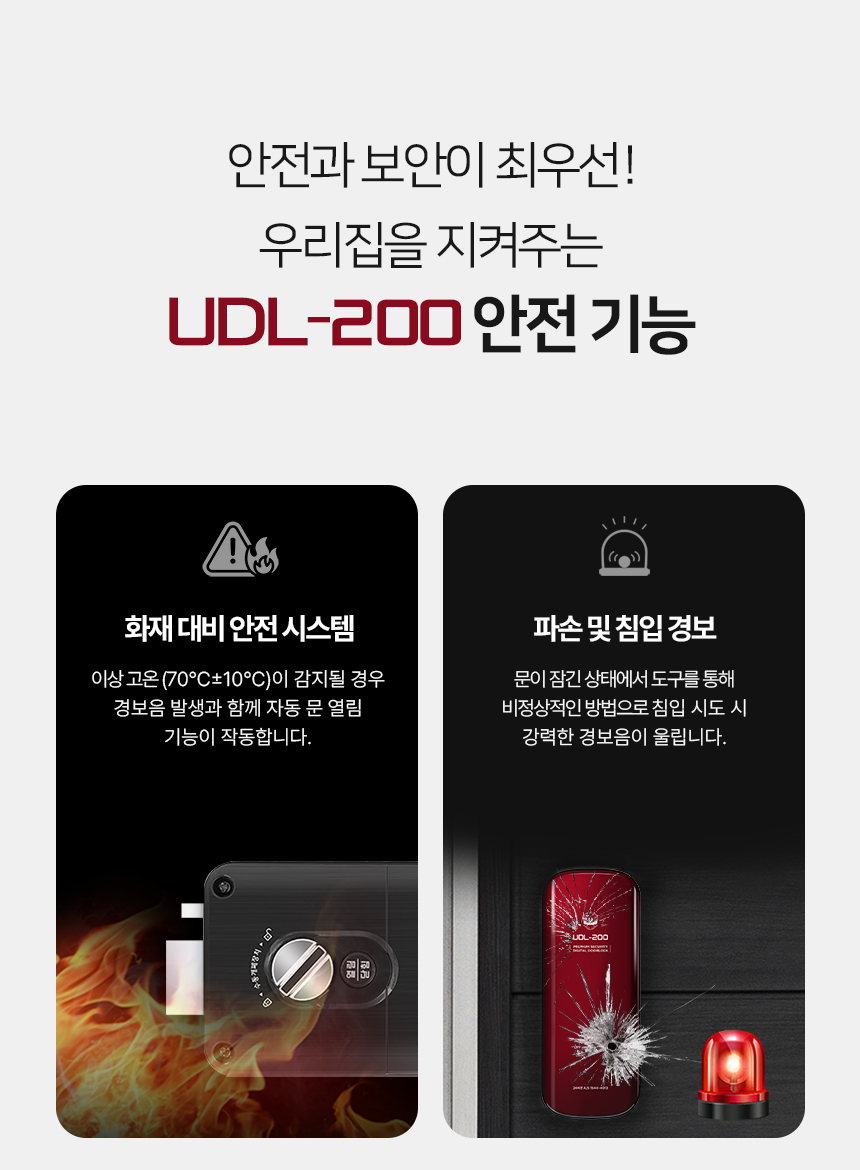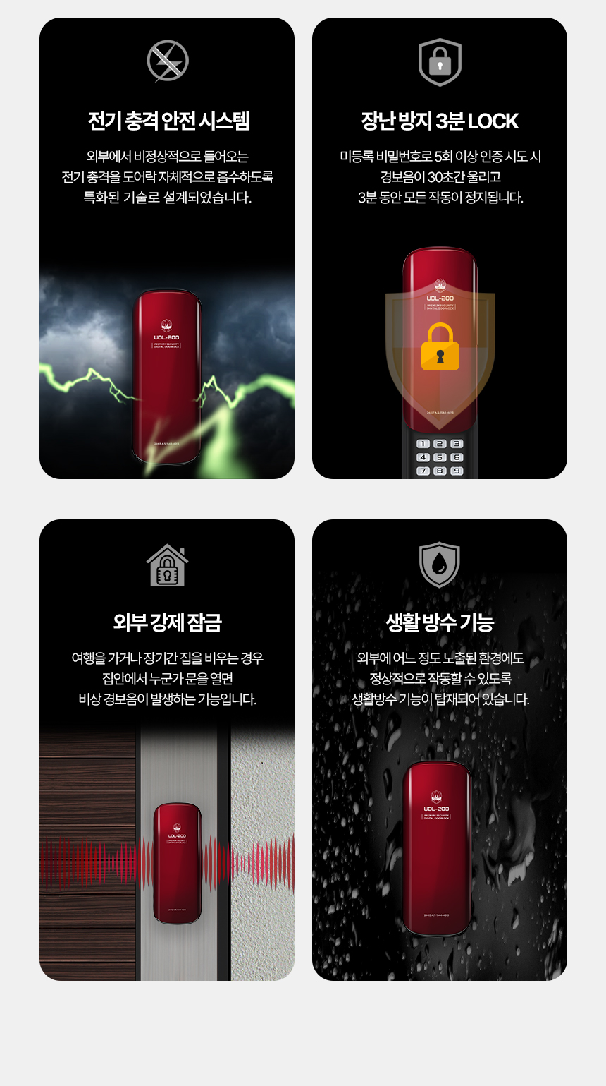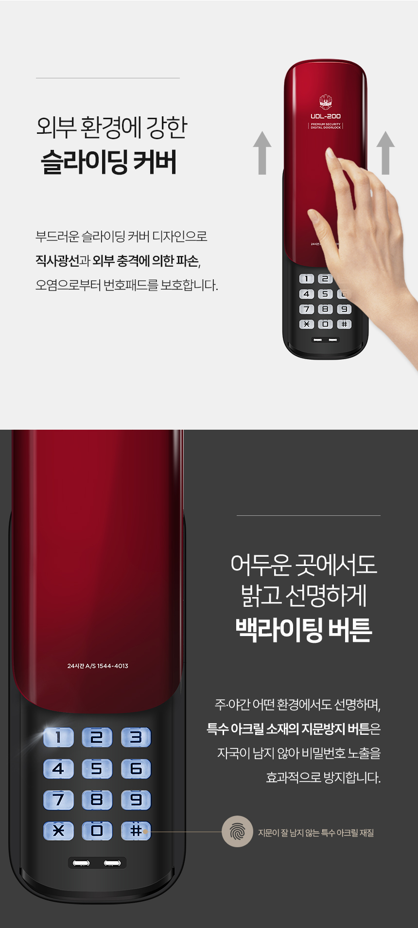 UDL-200 자가설치 즉시잠김 현관문 디지털도어락 번호키 비밀번호3개 허수기능 내부이중잠금 관리자기능