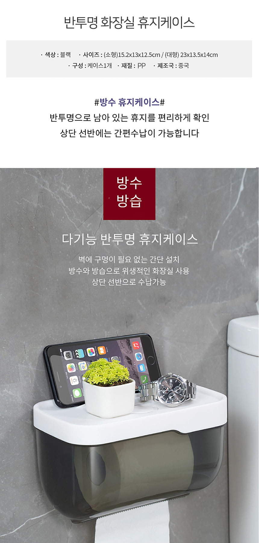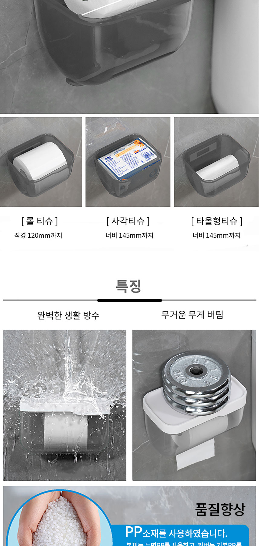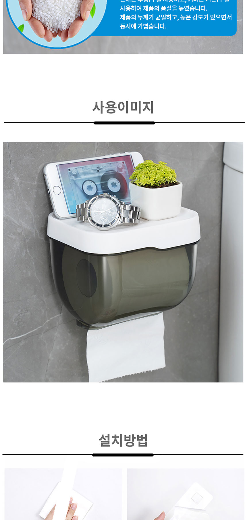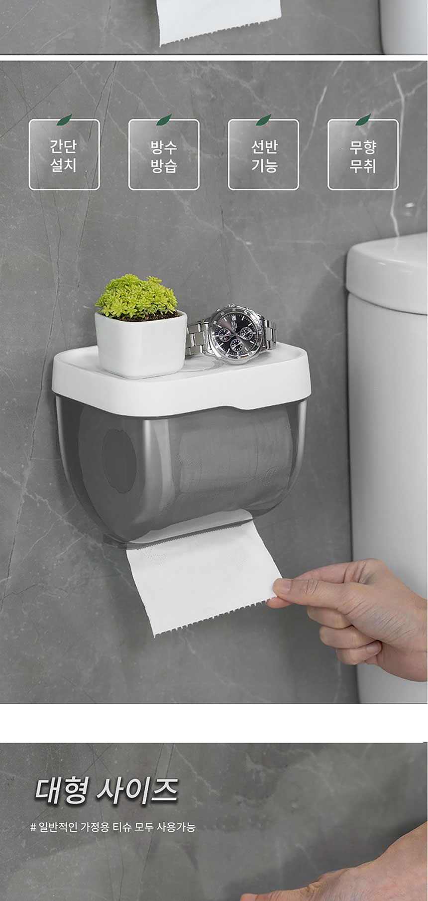 세이프티 무타공 휴지걸이 반투명 방수 욕실선반휴지걸이