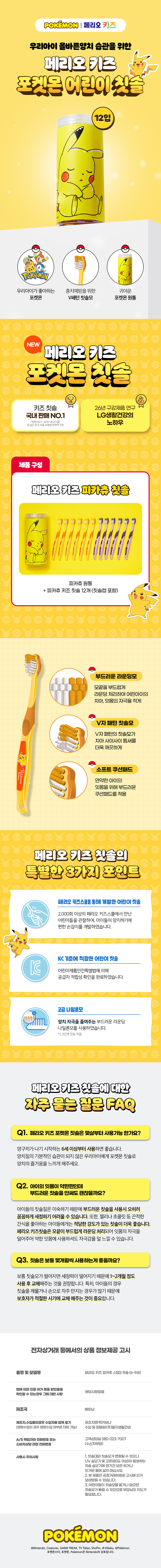 (현대Hmall)페리오 포켓몬 원통형 키즈 3단계 칫솔12입(피카츄)_칫솔캡 포함
