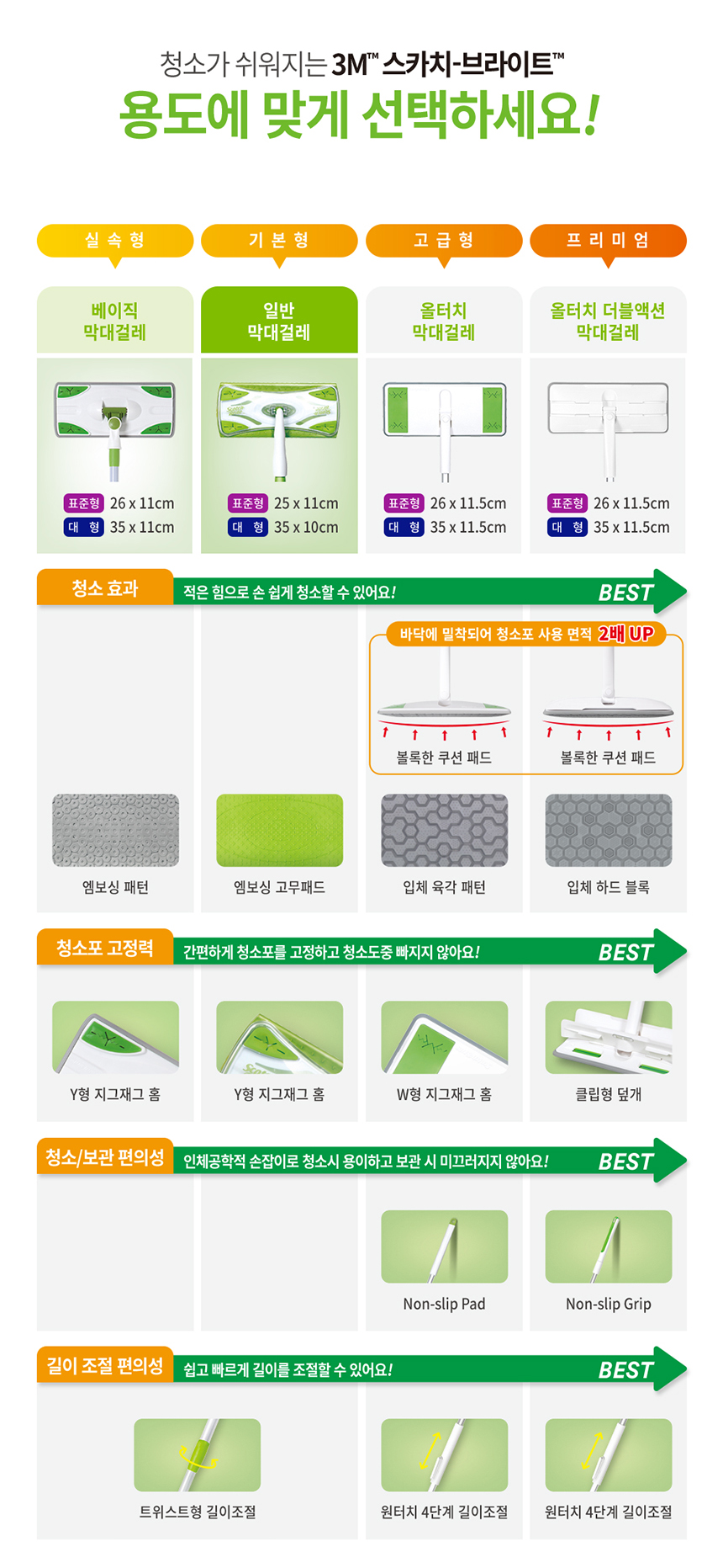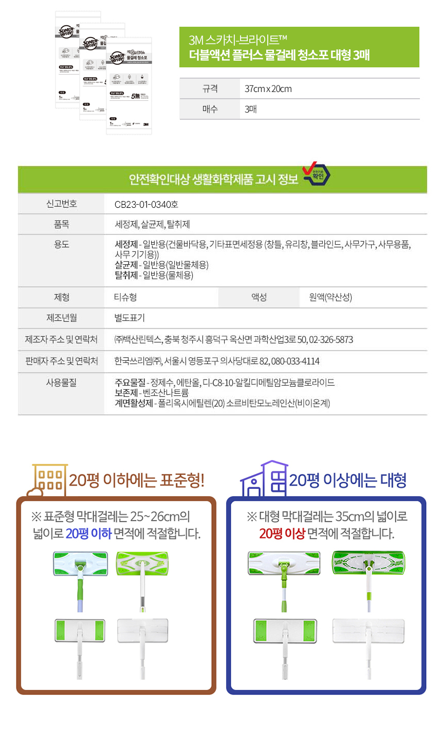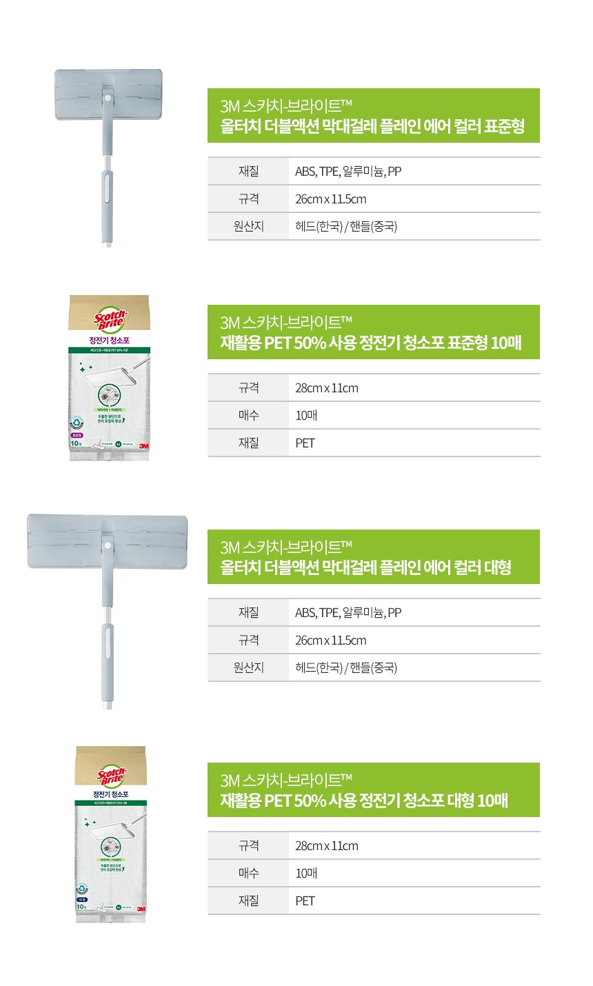 3M 대형 올터치 더블액션 막대걸레 플레인에어 컬러에디션(정전기10매+물걸레3매)