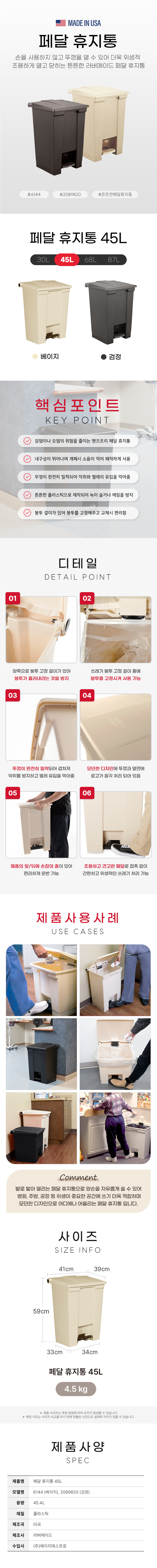 페달휴지통 45L 6144 / 발개폐식 쓰레기통