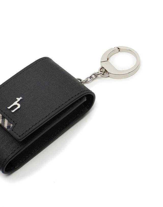 고급스럽고 모던한 쉐입의 디자인으로 하단 실버 퍼피장식과 체크배색으로 포인트를 준 스마트키홀더 입니다.
