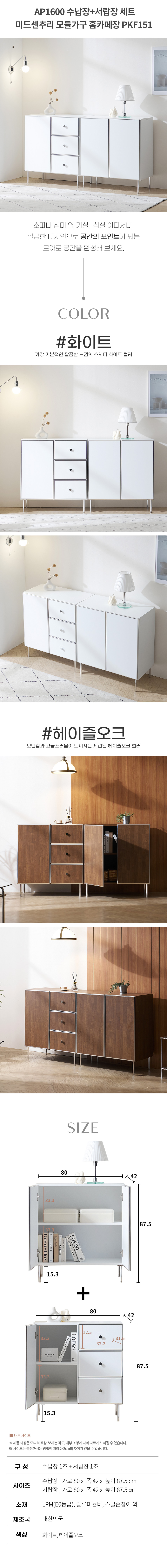 로아 AP1600 수납장+서랍장 세트 미드센추리 모듈가구 홈카페장 PKF151C