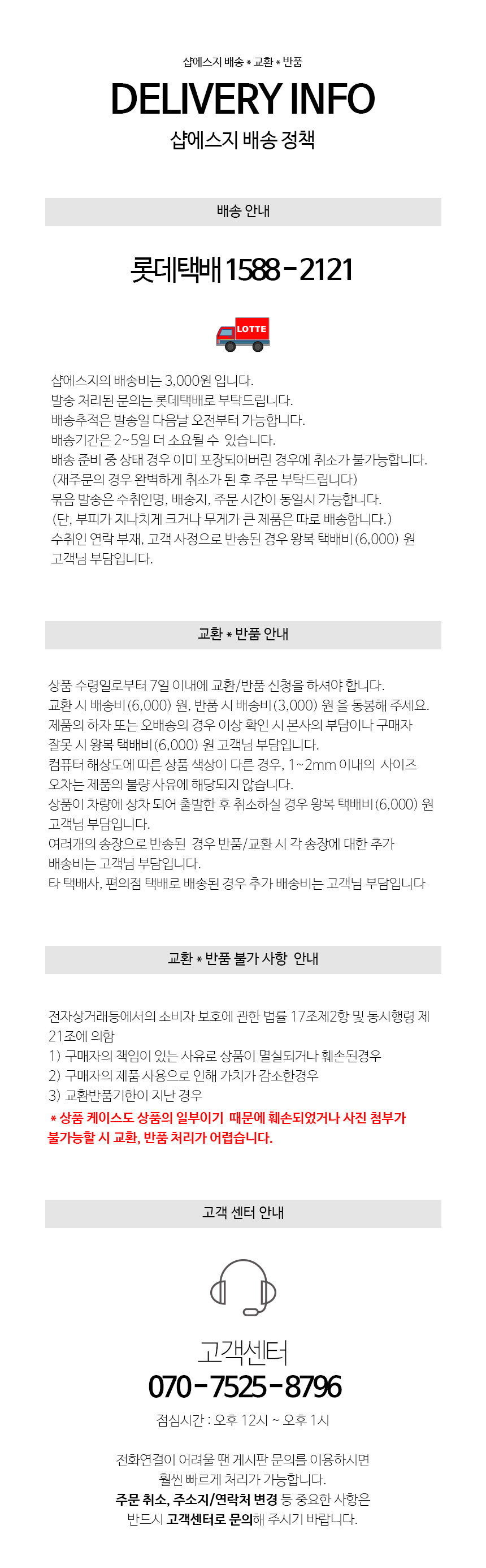 추가배송비관련 주의사항