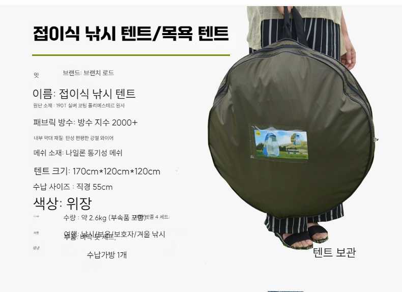 원터치 방수 텐트 1인용 캠핑 샤워 탈의실 낚시 미니