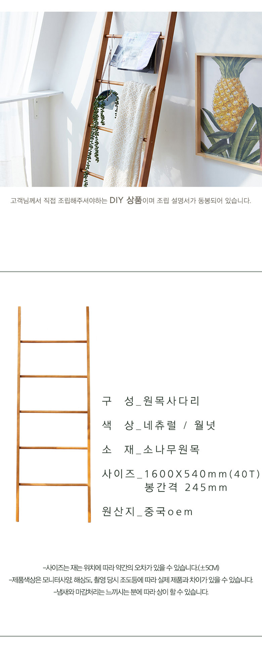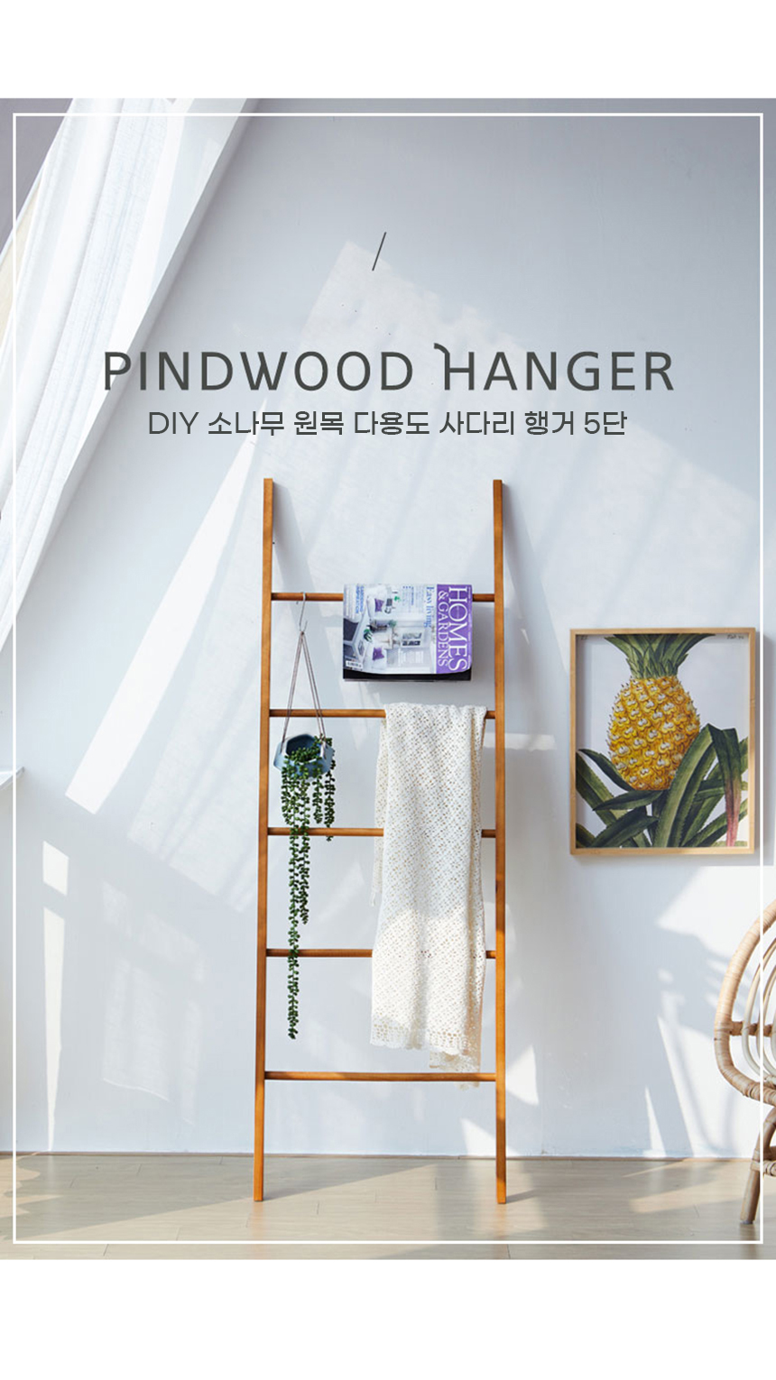 (현대Hmall)파로마 네오 DIY 소나무 원목 다용도 사다리 행거 5단 NEO299