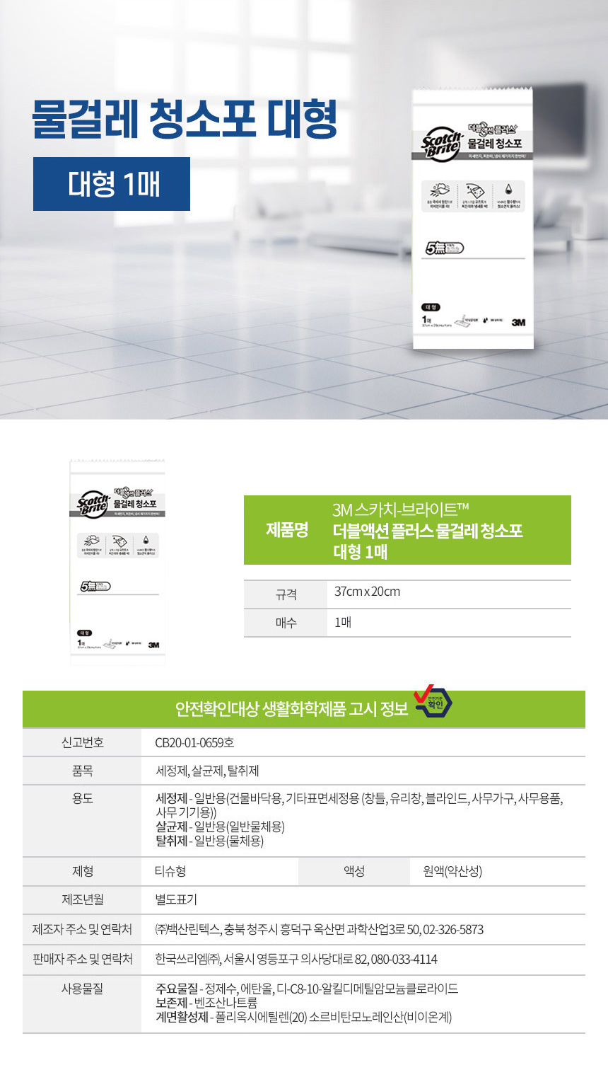 3M 대형 올터치 막대걸레 +정진기10매+물걸레 1매+정전기 청소포 30매+물걸레청소포 12매+메가커피