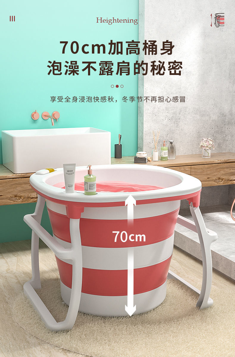 성인용 접이식욕조 간이 휴대용 스몰 반신욕기 바디수트 원룸 핑크 목욕통 1인용 소형 깊은 스몰핑크