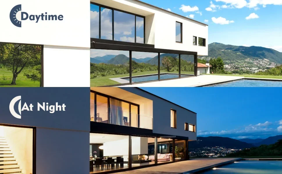 밤에 내부 조명이 외부 조명보다 강할 때, 외부 사람들은 안에 있는 사람들을 볼 수 있습니다. 밤에는 커튼을 당기는 것을 잊지 마십시오.