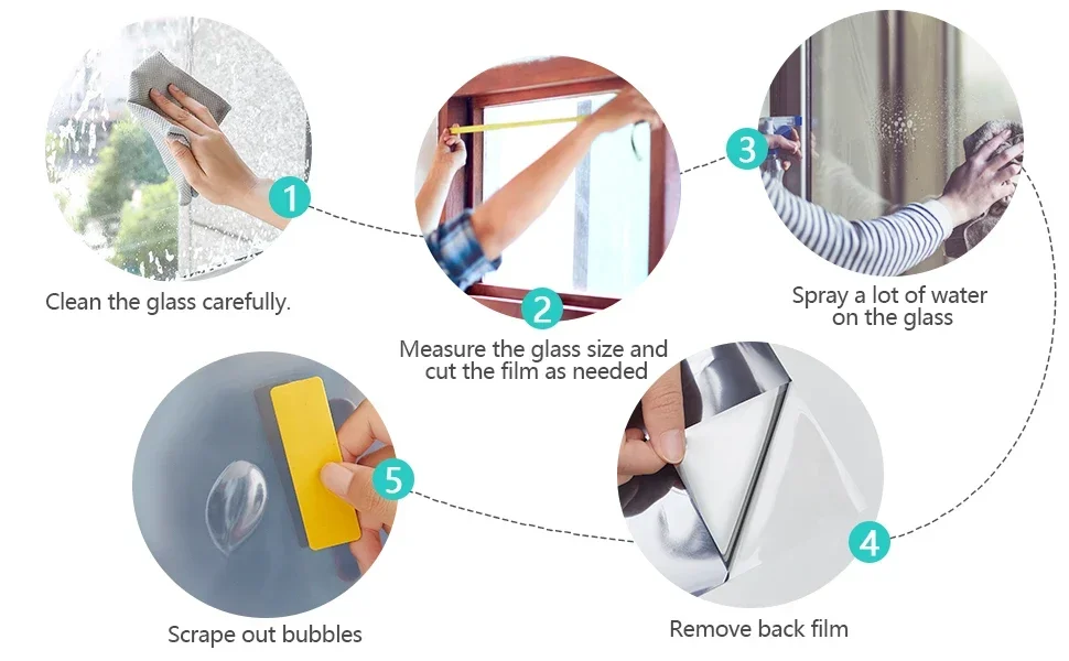 스크레이퍼로 과도한 물과 공기를 위에서 아래로 조심스럽게 제거하십시오. 그렇지 않으면 창 필름이 쉽게 떨어집니다.
