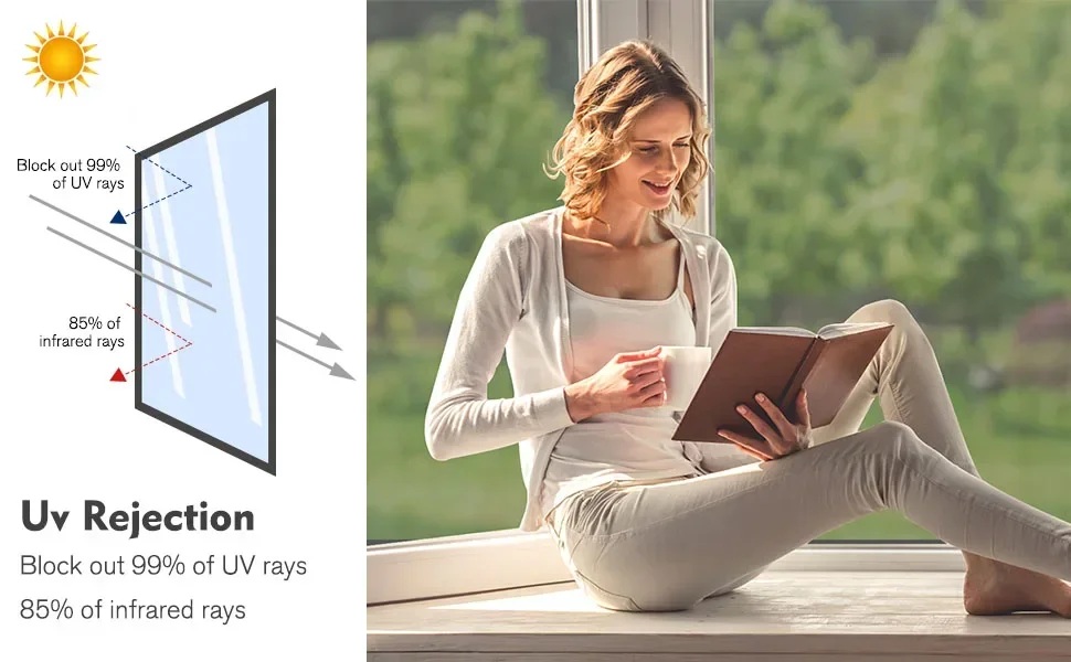 다기능: 적절한 집 창 색조, 낮에는 프라이버시 커튼으로 작동, 또한 성가신 눈부심을 차단하고 자외선을 거부하여 페이딩을 줄일 수 있습니다. 내부 가구를 보호합니다. 식당, 주거, 침실, 사무실 등에서 널리 사용됩니다.