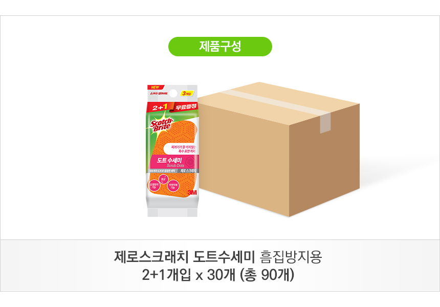 음식물이 끼지않는 제로스크래치 도트수세미 2+1입 1BOX30개)