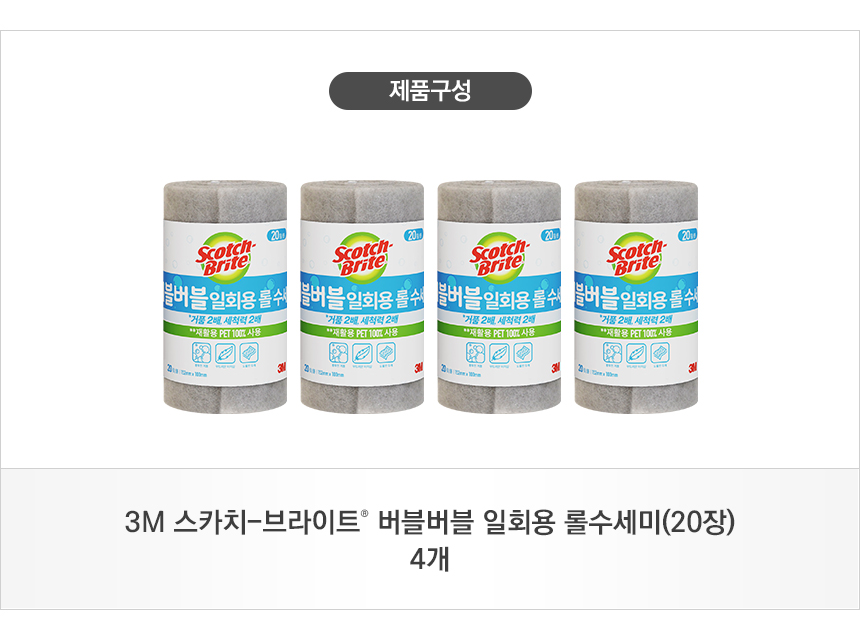버블버블 일회용 롤수세미 1Roll20장) x 4개