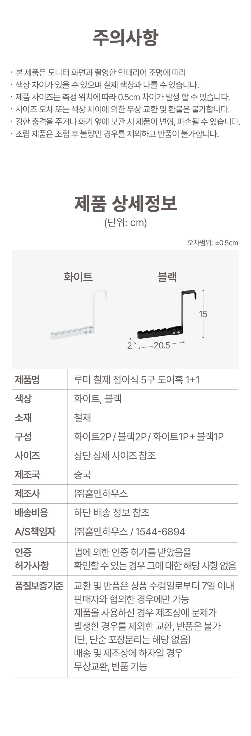 루미 철제 접이식 5구 도어훅 1+1