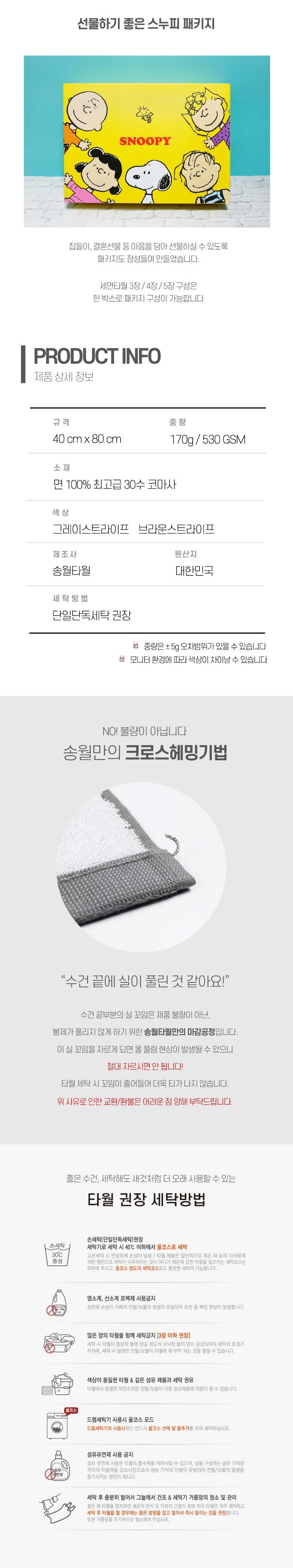 송월타월 30수 코마사 170g 스누피 멜로우 스트라이프 세면타월 (40x80cm) 6매