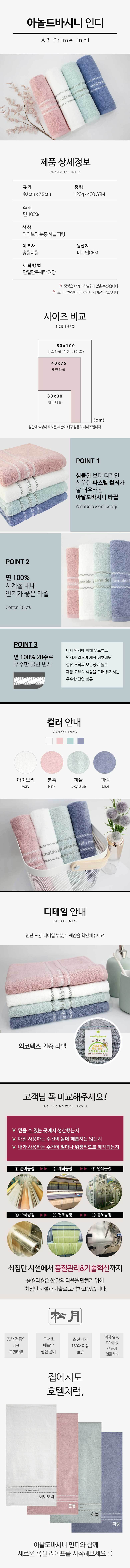 송월타월 20수 120g 아놀드바시니 인디 세면타월 (40x75cm) 10매
