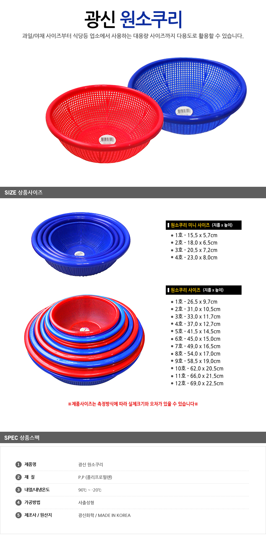 플라스틱 원소쿠리 미니 ~ 5호 정리 보관 다용도