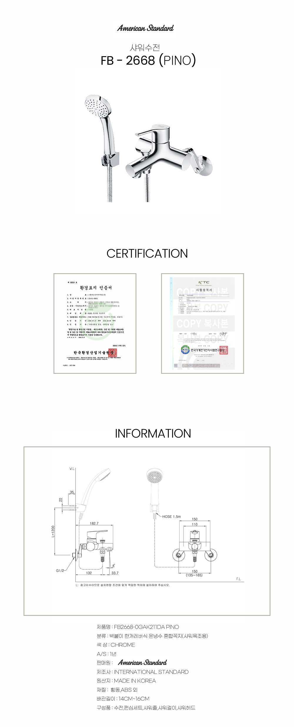 아메리칸스탠다드 욕조수전 샤워수전 FB-2668 (PINO)