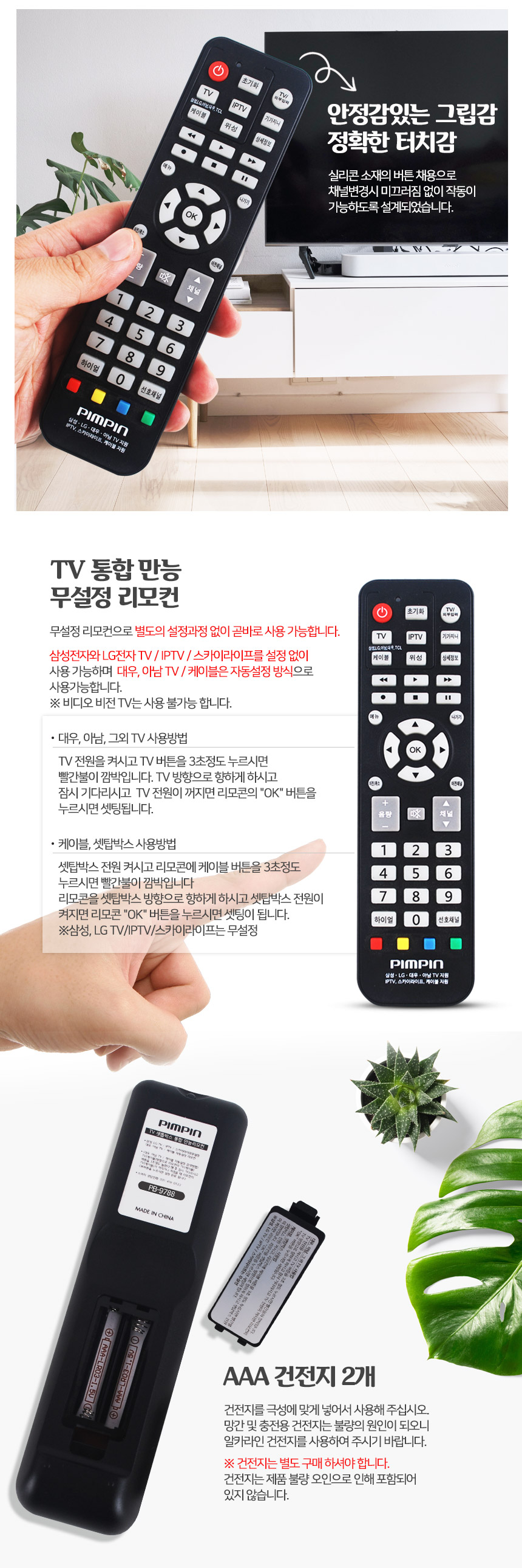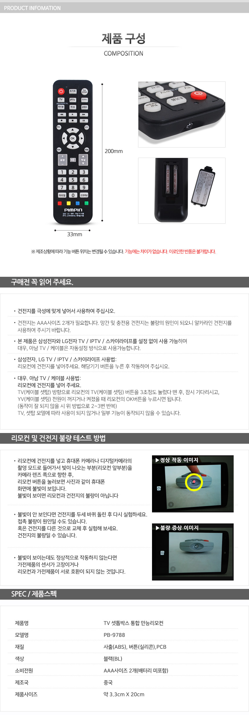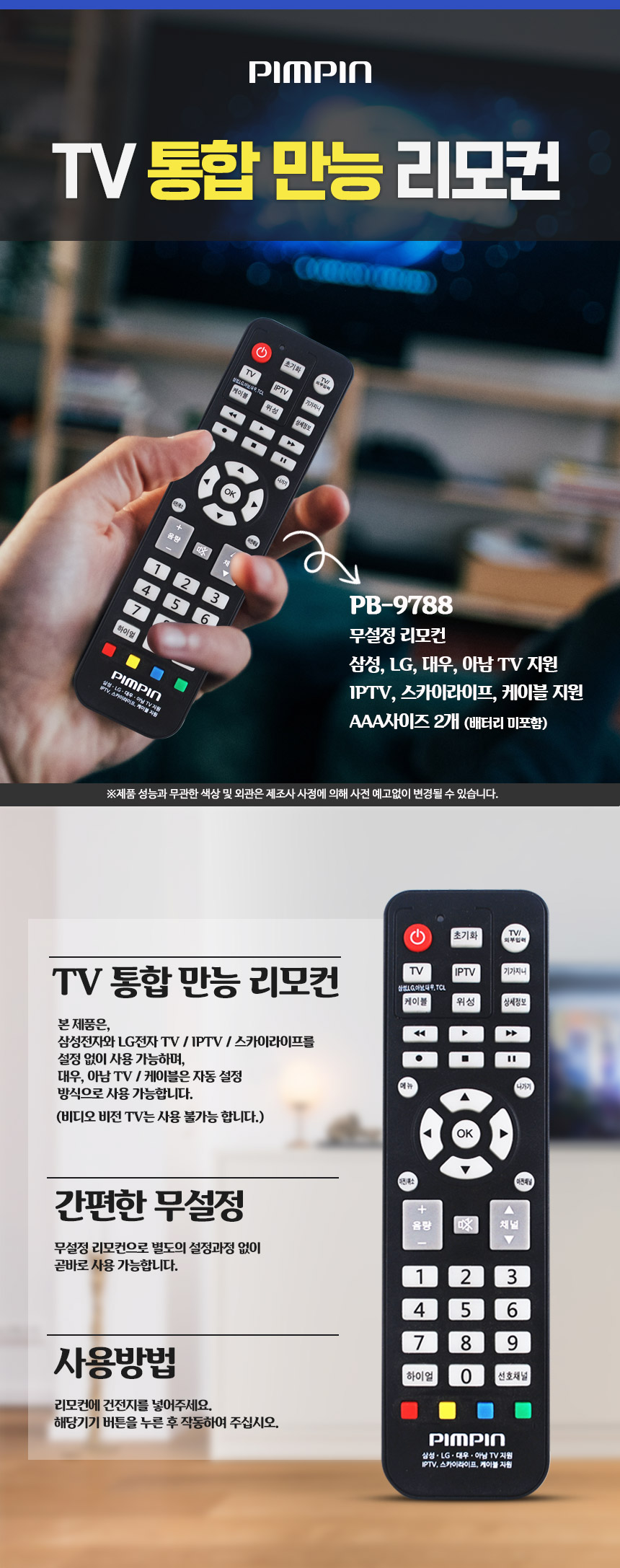 무설정리모콘 PB-9788 통합리모콘 TV리모콘 리모컨 셋톱박스