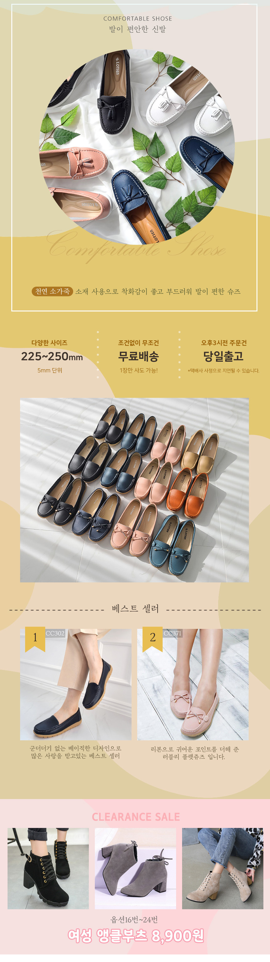 겨울 기모 단화 천연소가죽 플랫슈즈 슬립온 편한신발 여성신발 모음전 225~250mm