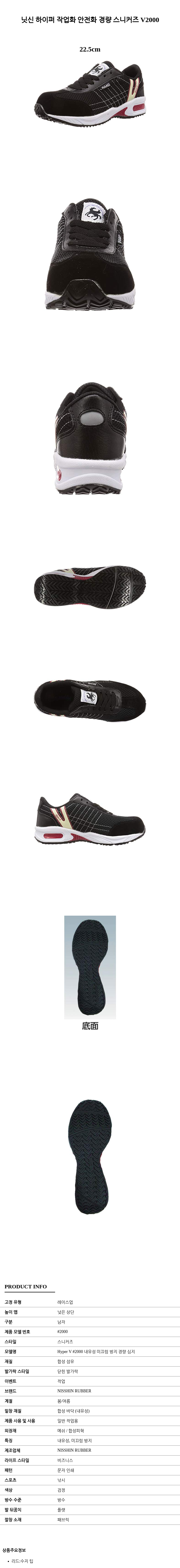 닛신 하이퍼 작업화 안전화 경량 스니커즈 V2000