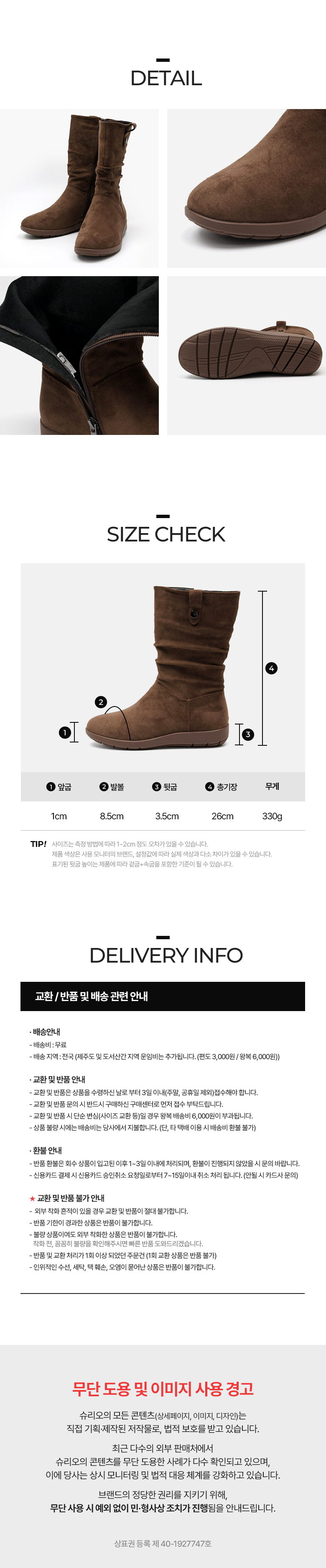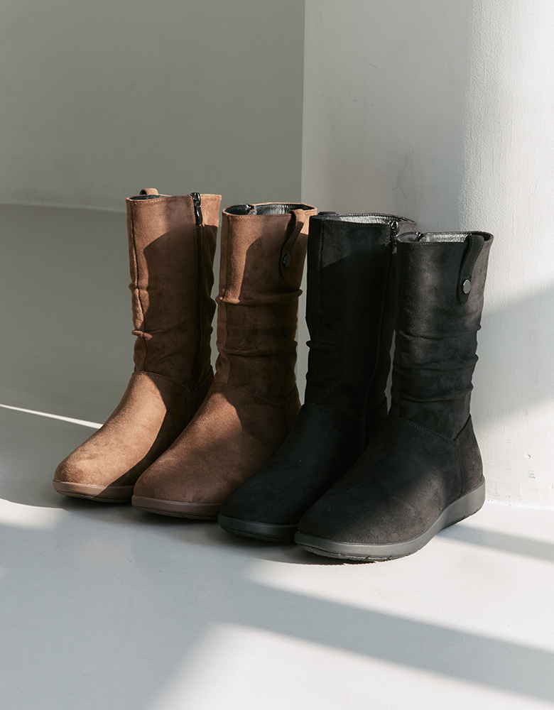 스웨이드 셔링 통넓은 기모 미들부츠 4cm