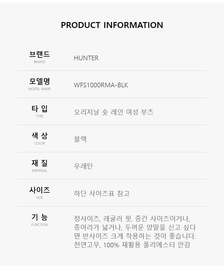 헌터 여성 오리지날 숏 레인 부츠(WFS1000RMA BLK)