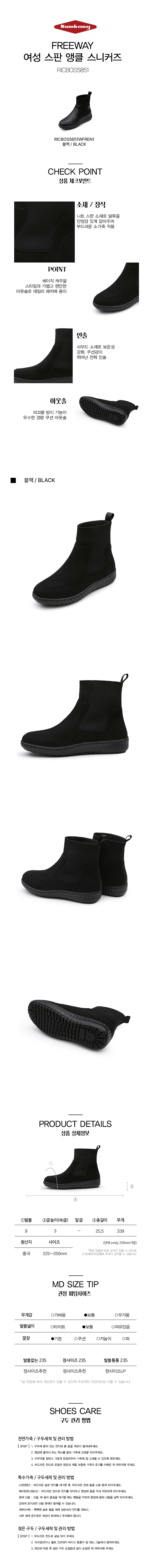 [금강제화] 프리웨이 여성 스판 앵클 스니커즈 RICBOS5851WFREN1