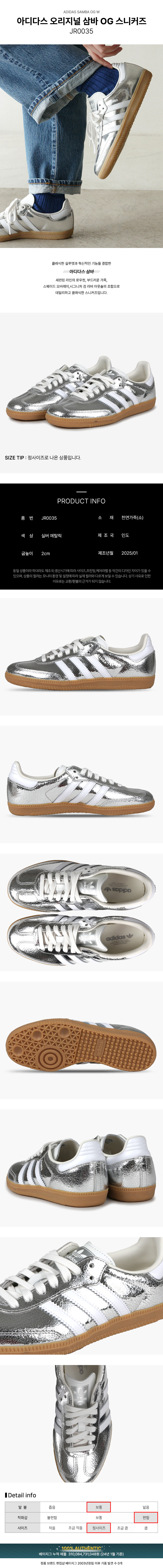 (현대Hmall)아디다스 삼바 OG 실버 메탈릭 클라우드 화이트 여성 스니커즈 운동화 JR0035