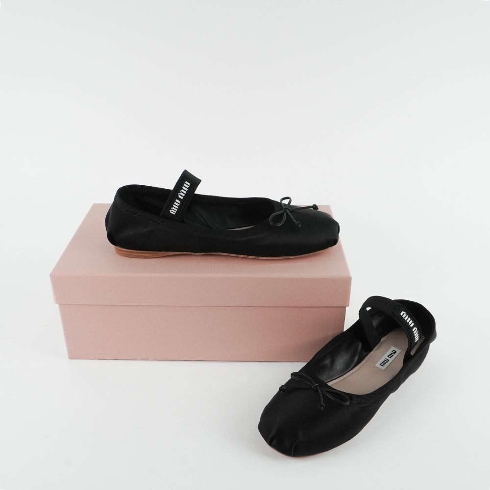 미우미우 여성 새틴 발레리나 슈즈 5F794D QU6 F0002