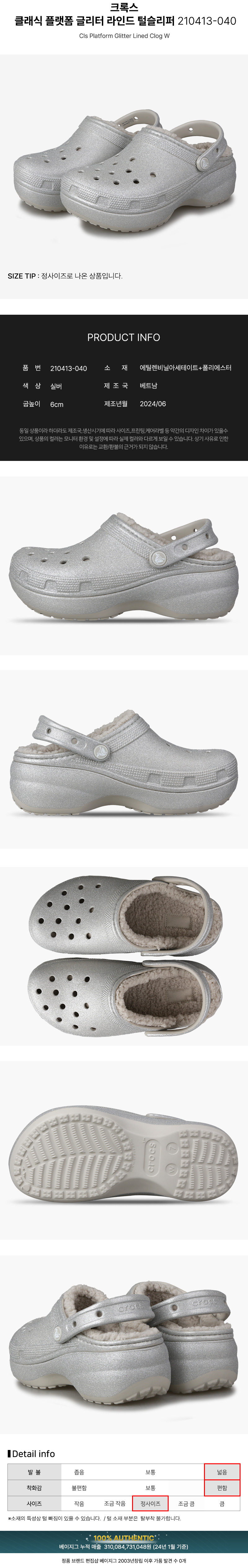 (현대Hmall)크록스 클래식 플랫폼 글리터 라인드 실버 여성 겨울 방한 털슬리퍼 210413-040