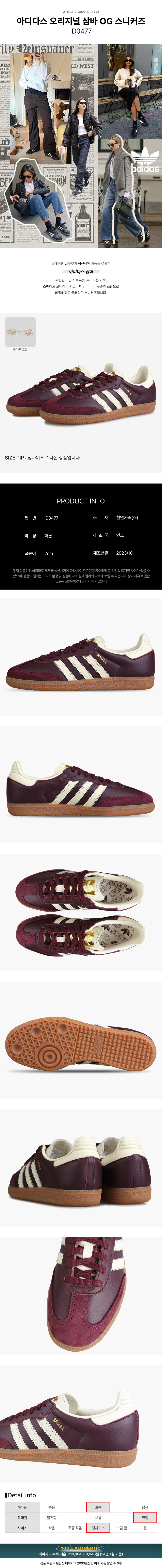 (현대Hmall)아디다스 오리지널 삼바 OG 마룬 크림화이트 여성 스니커즈 운동화 ID0477