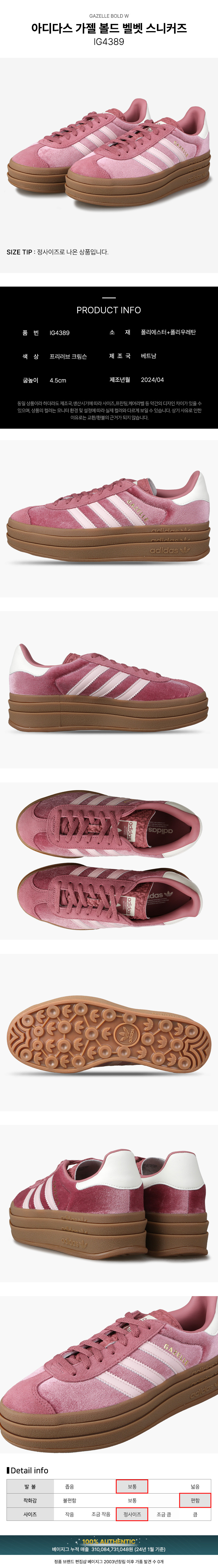 (현대Hmall)아디다스 가젤 볼드 벨벳 프리러브 크림슨 핑크 스니커즈 운동화 IG4389