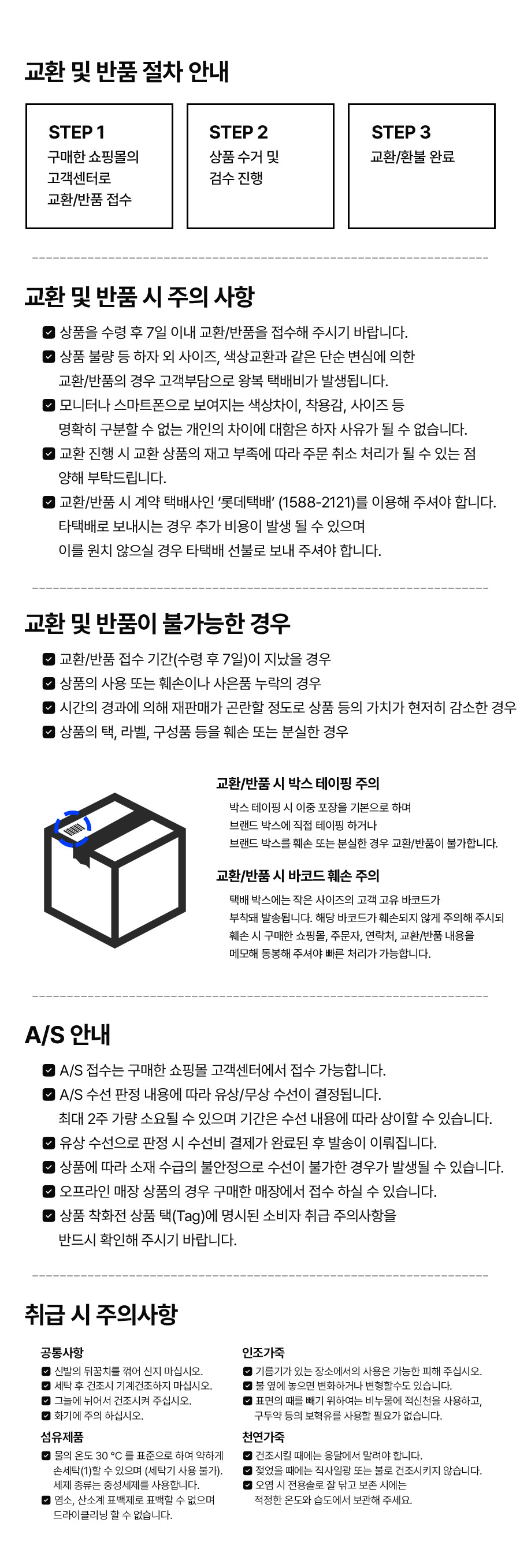 • 상품 정보 문의 : 하남점 브랜드 매장 (03180721915)