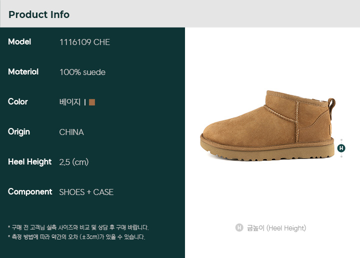 (현대Hmall)어그 25FW (1116109 CHE) 여성 클래식 울트라 미니 부츠